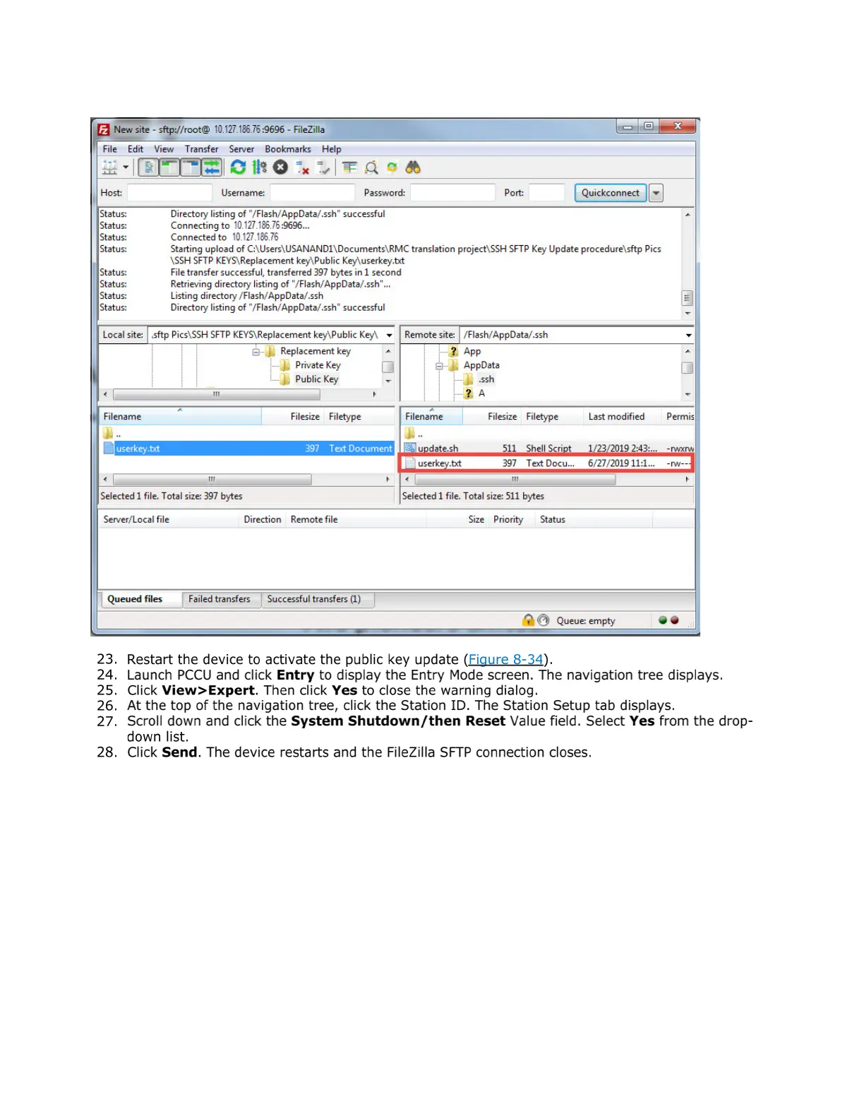 Figure 8-33: Verify public key upload is complete
