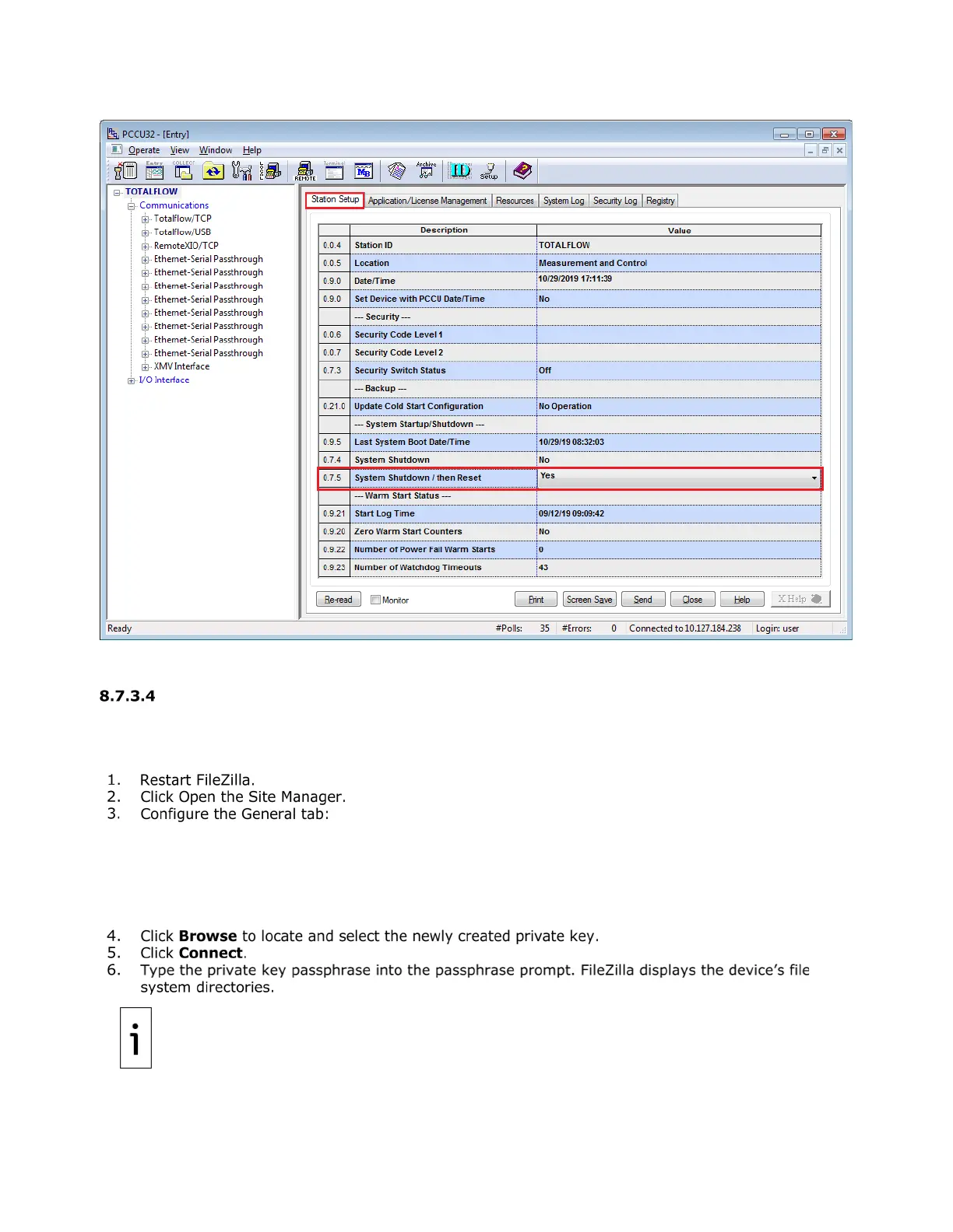 Figure 8-34: Restart Totalflow device after public key update