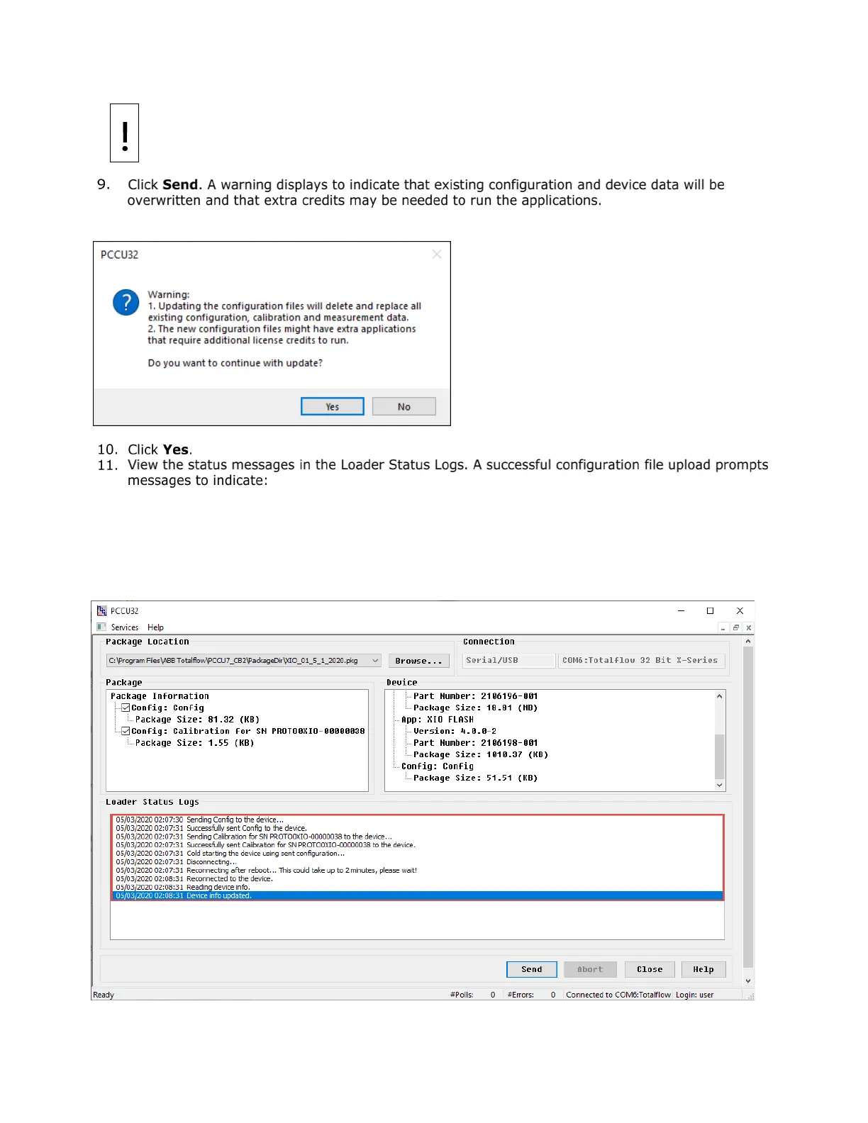Successful completion of the configuration file update displays the message “Device info updated.”