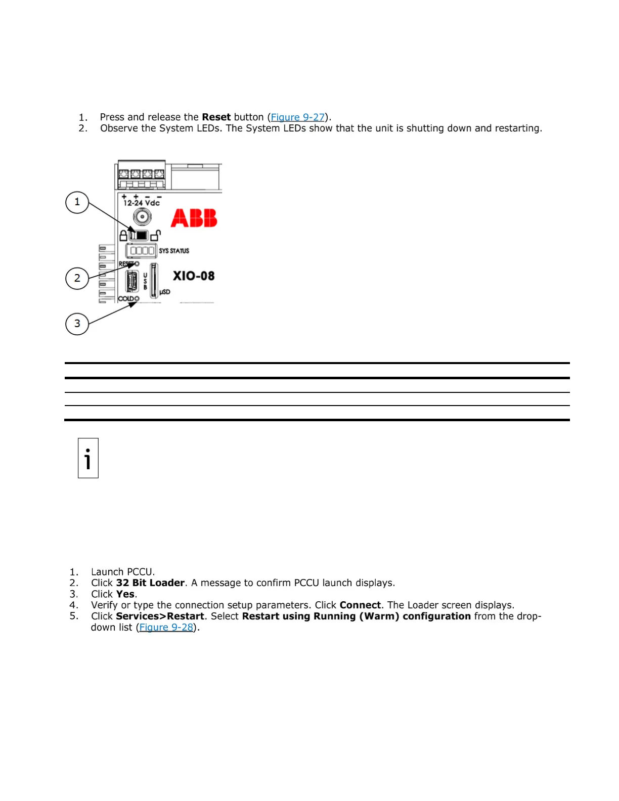 with the running (warm) configuration. If the XIO is installed inside an enclosure, you must have access to