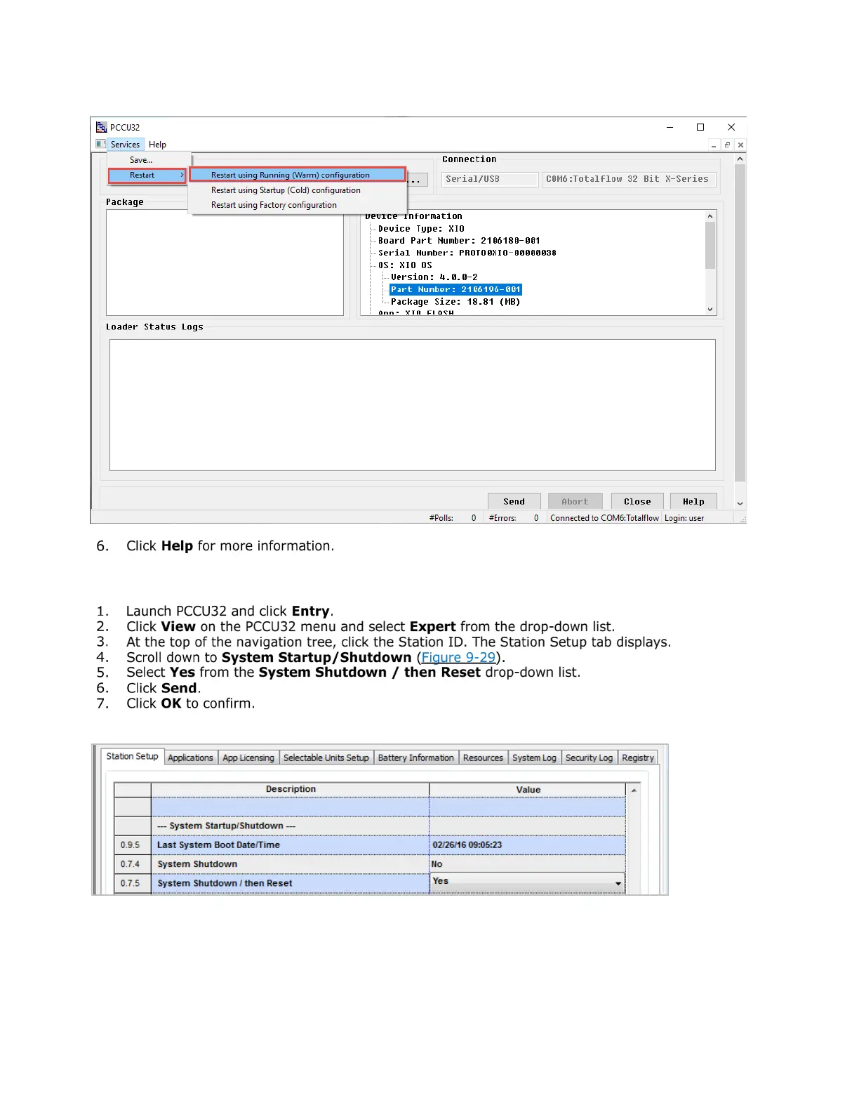 9.5.4 Warm restart from PCCU Entry mode