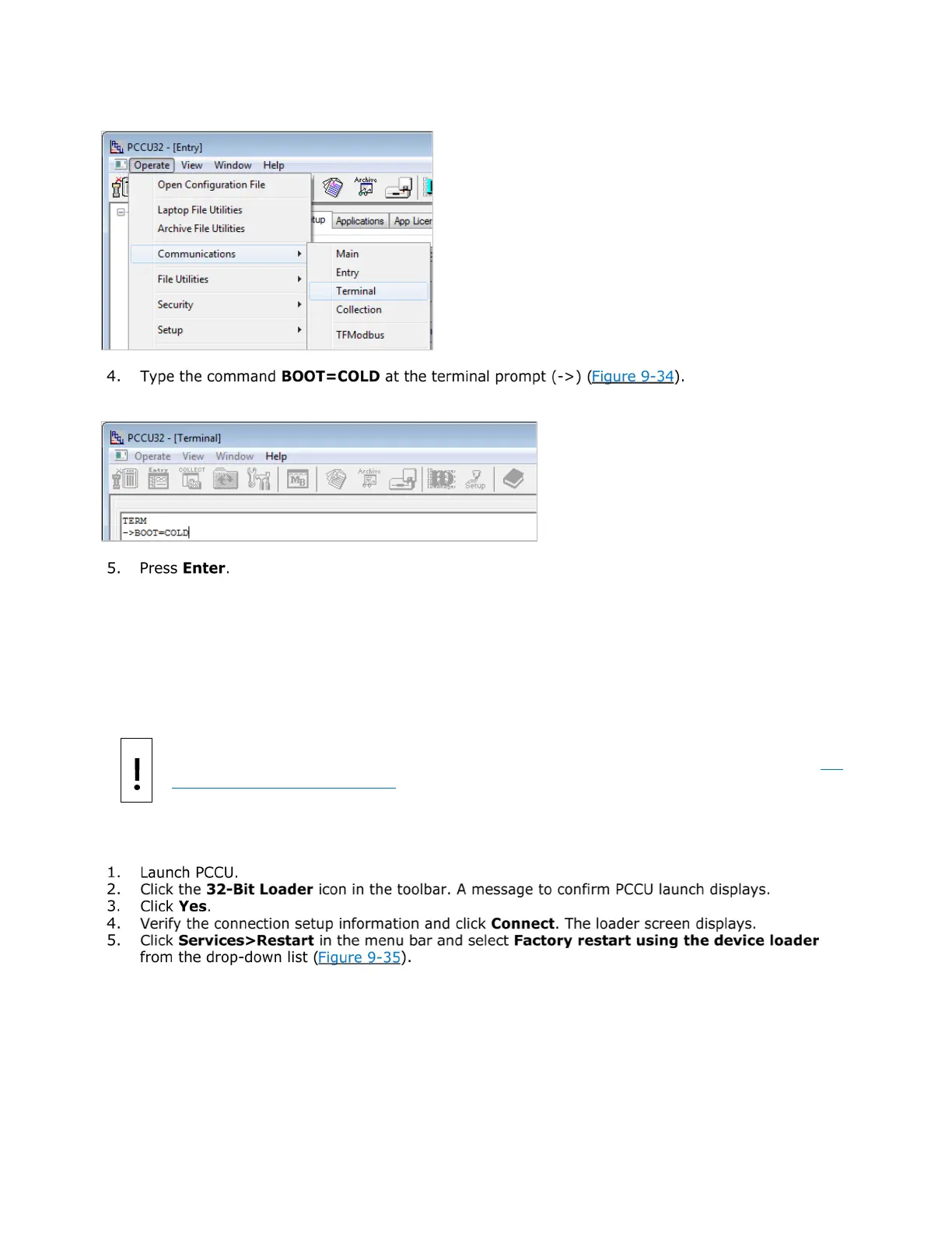 Figure 9-34: Terminal screen – cold boot