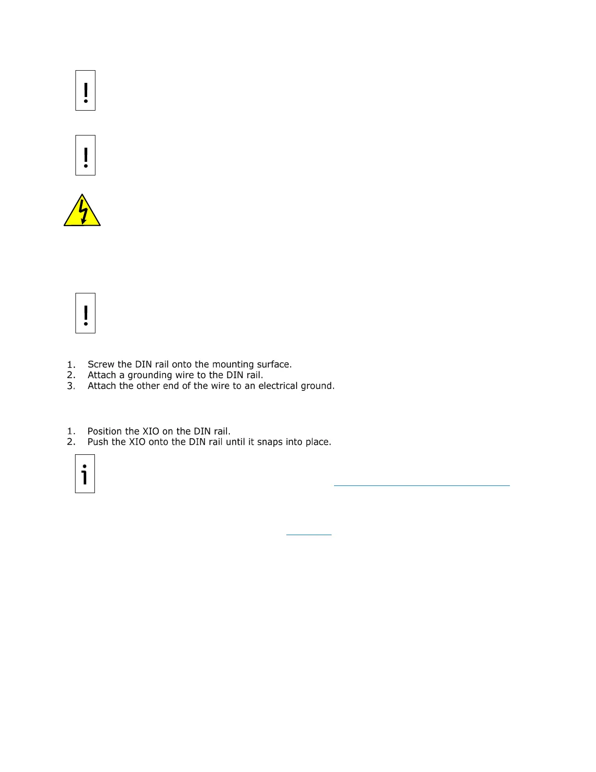 The XIO must be mounted on a grounded DIN rail.
