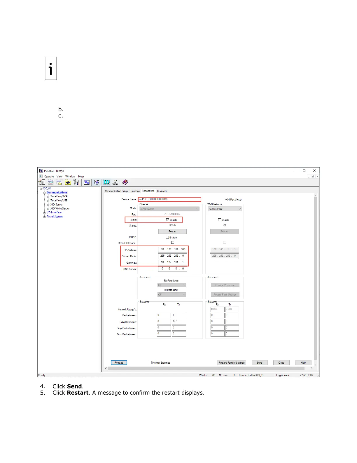 Figure 4-16: Enable XIO for network communication with valid IP address