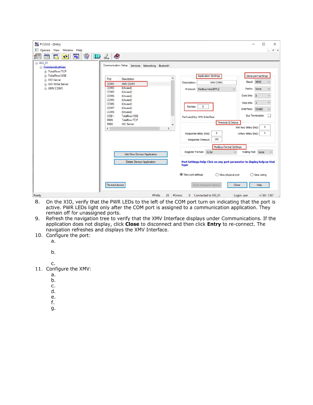 Figure 4-45: XMV Interface for XIO COM1 – default communication and format settings