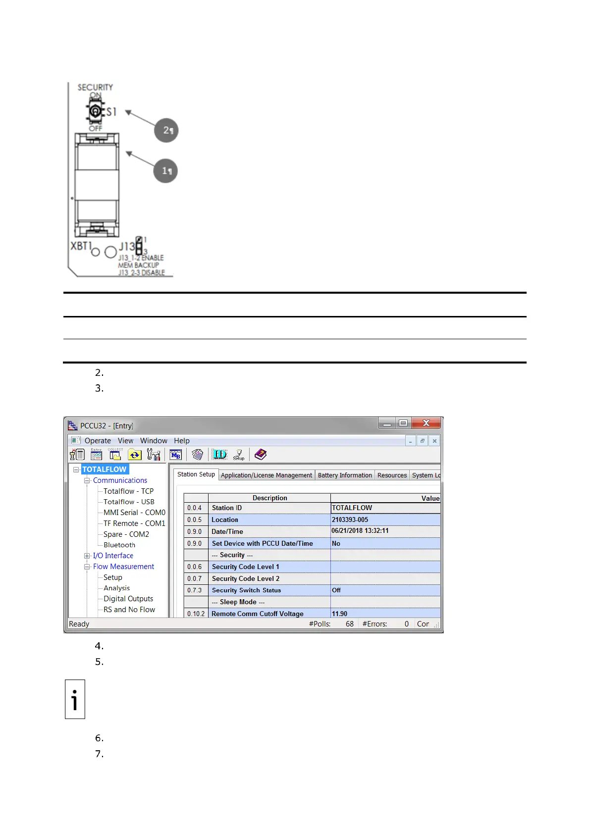 On the Station Setup tab, verify that the Security Switch Status field shows Off.