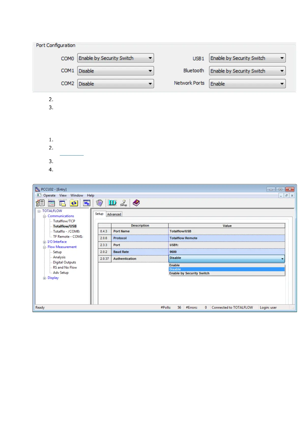 Figure 9-8: Enabling communication port authentication - Entry mode