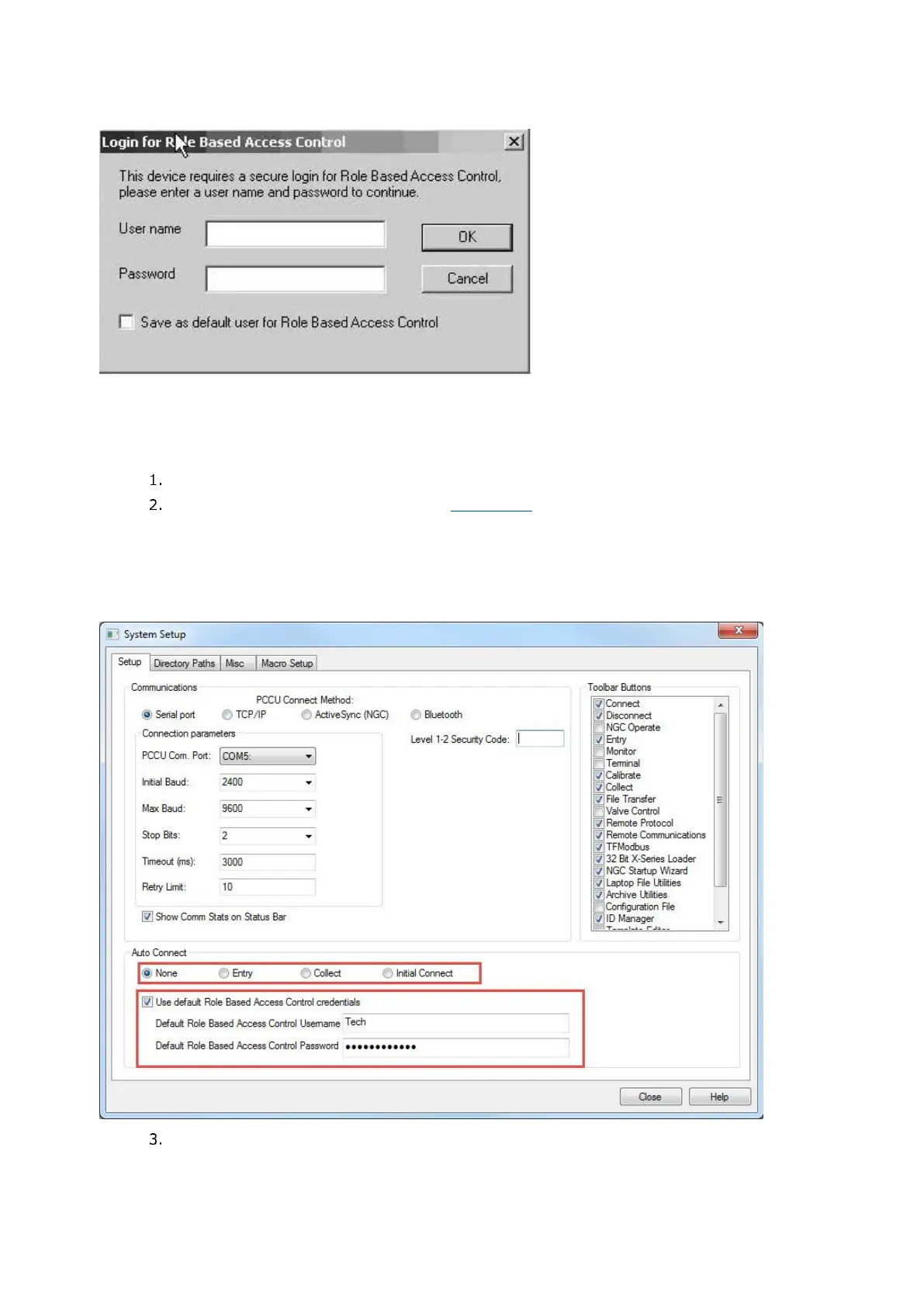 Figure 9-10: System Setup Auto Connect and RBAC credentials