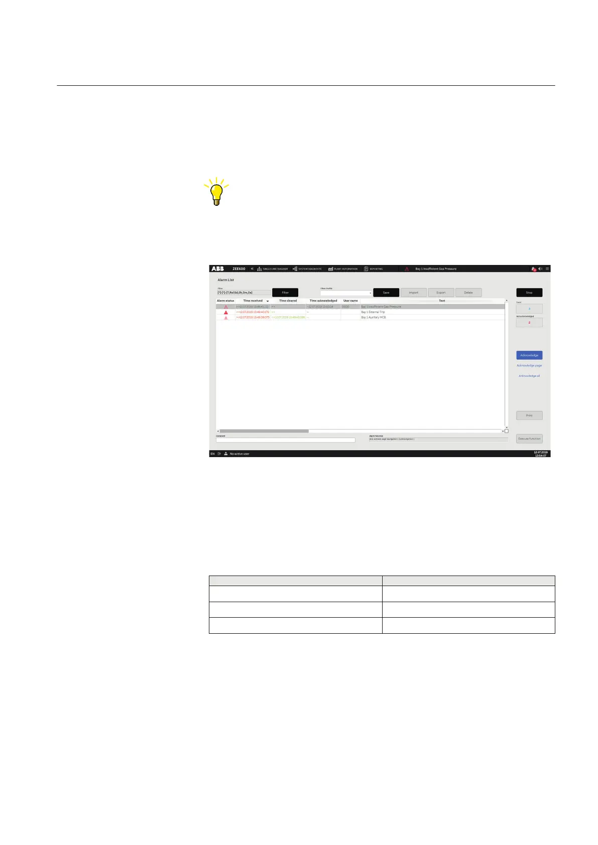 appearance of the alarm list is configurable. It is possible to filter the alarms and also