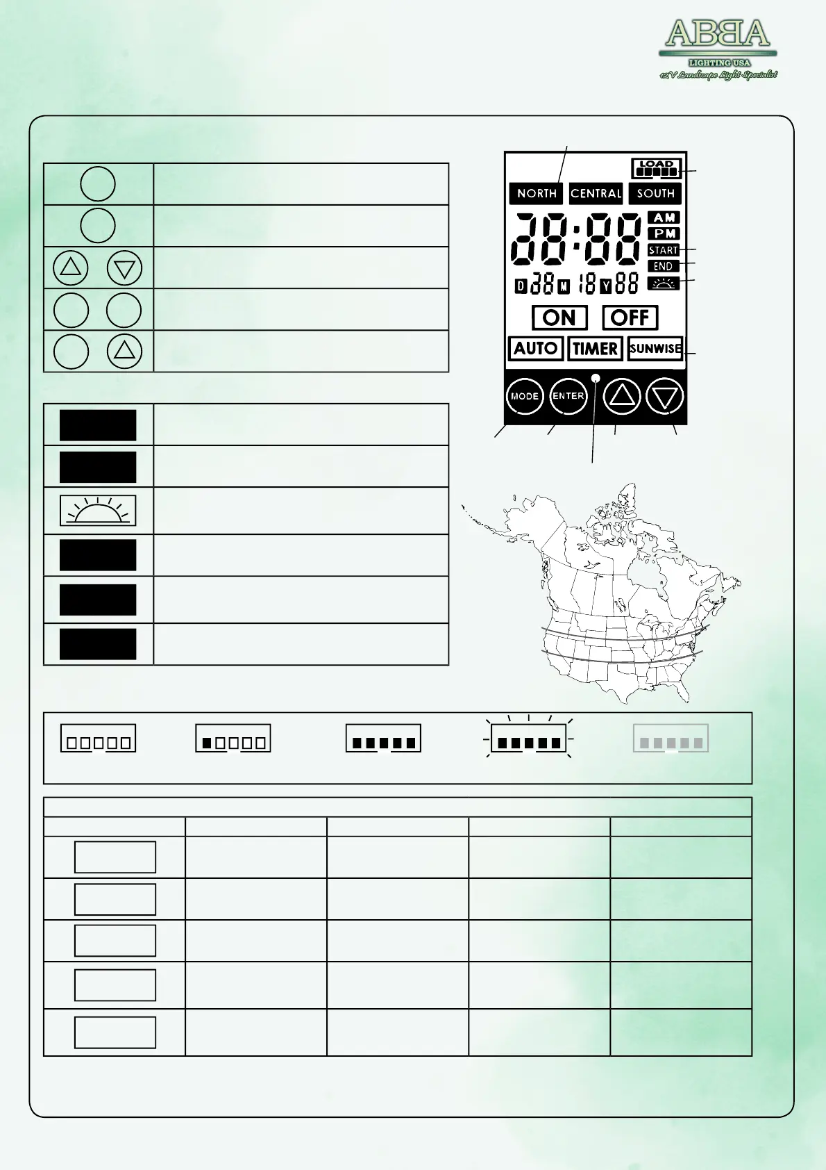 *Necessary for Timer, Auto and Sunwise settings