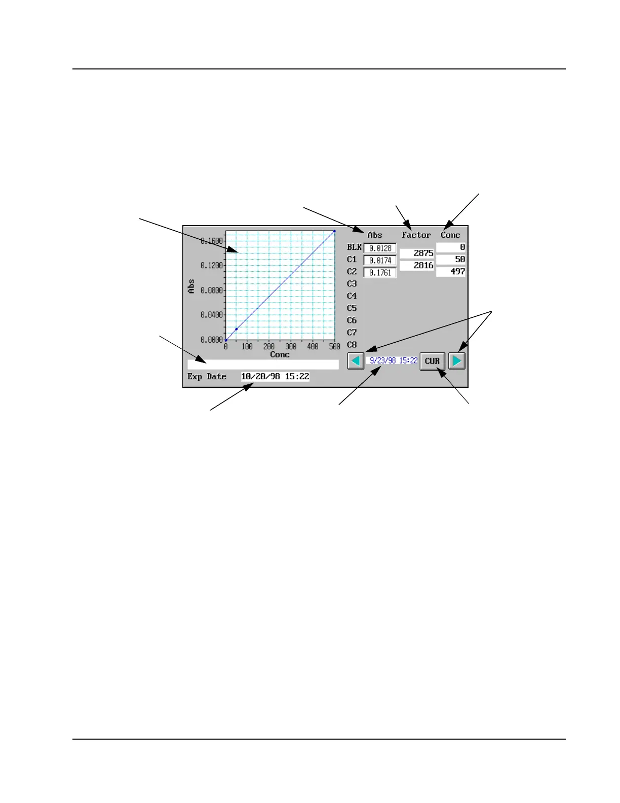 Figure 6.7: Calibration Information Area of the ASSAY STATUS