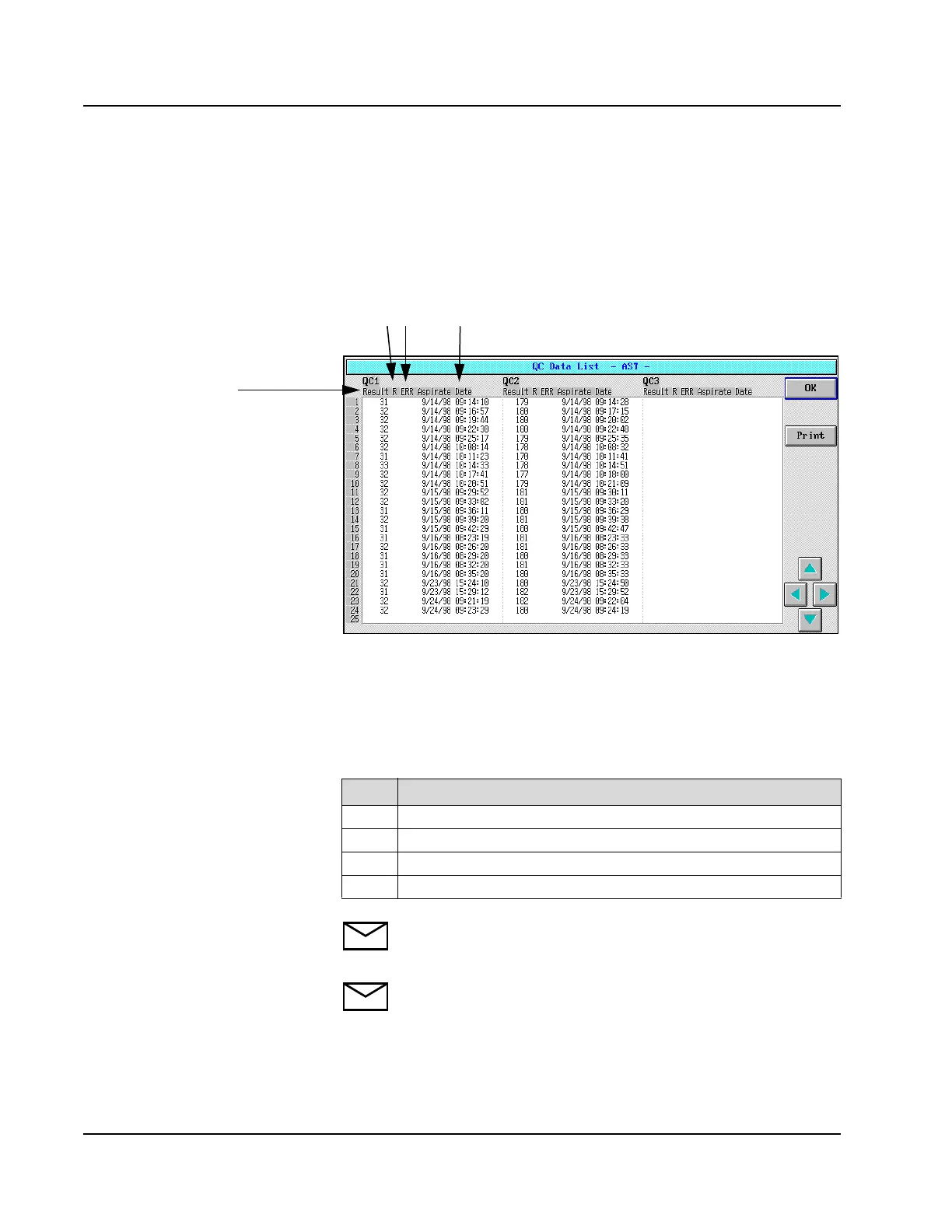 the right-hand side of the Levey-Jennings Graph screen. The QC Data