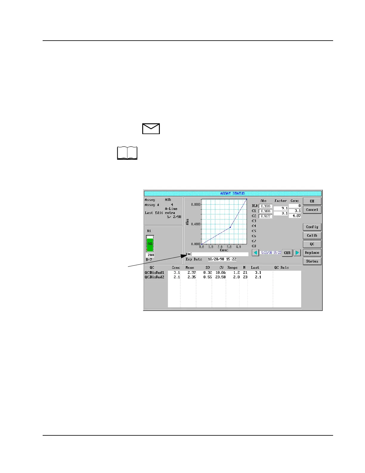 Calibration Error Codes are displayed on the ASSAY STATUS screen.