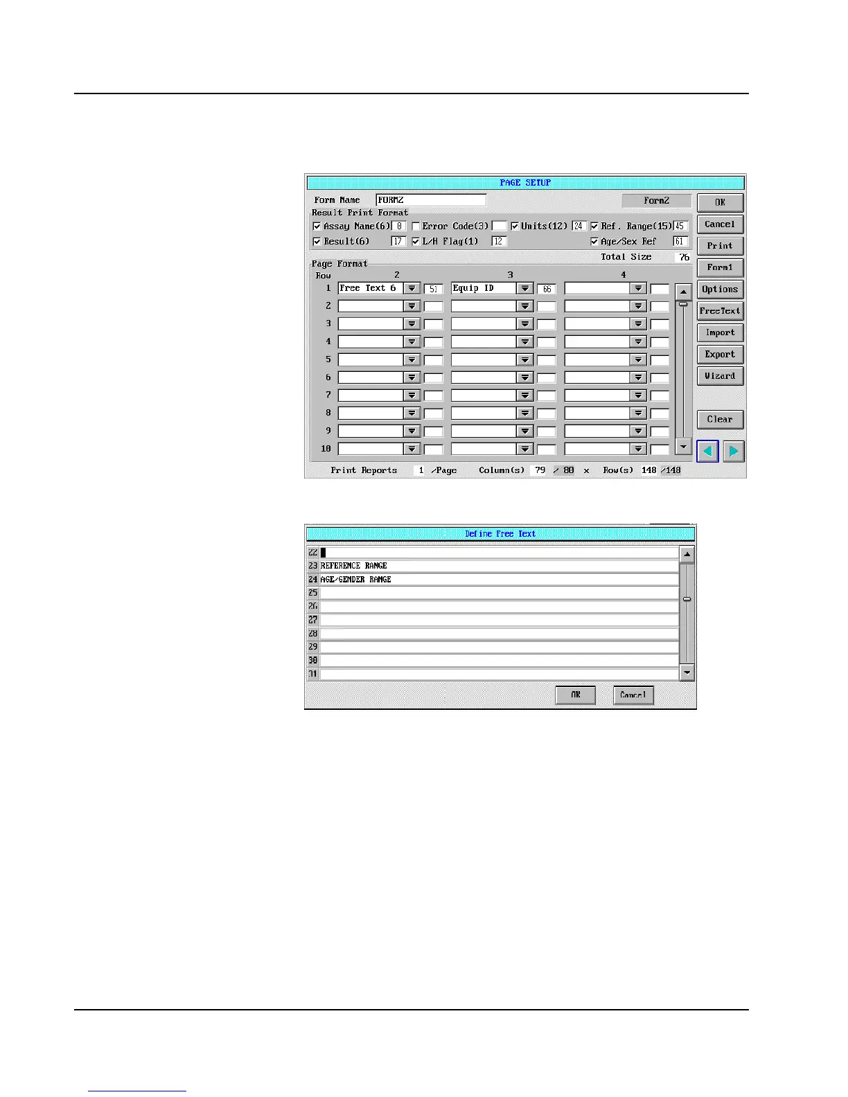 Abbott AEROSET - PAGE SETUP Screen (Form 2); Define Free Text Screen