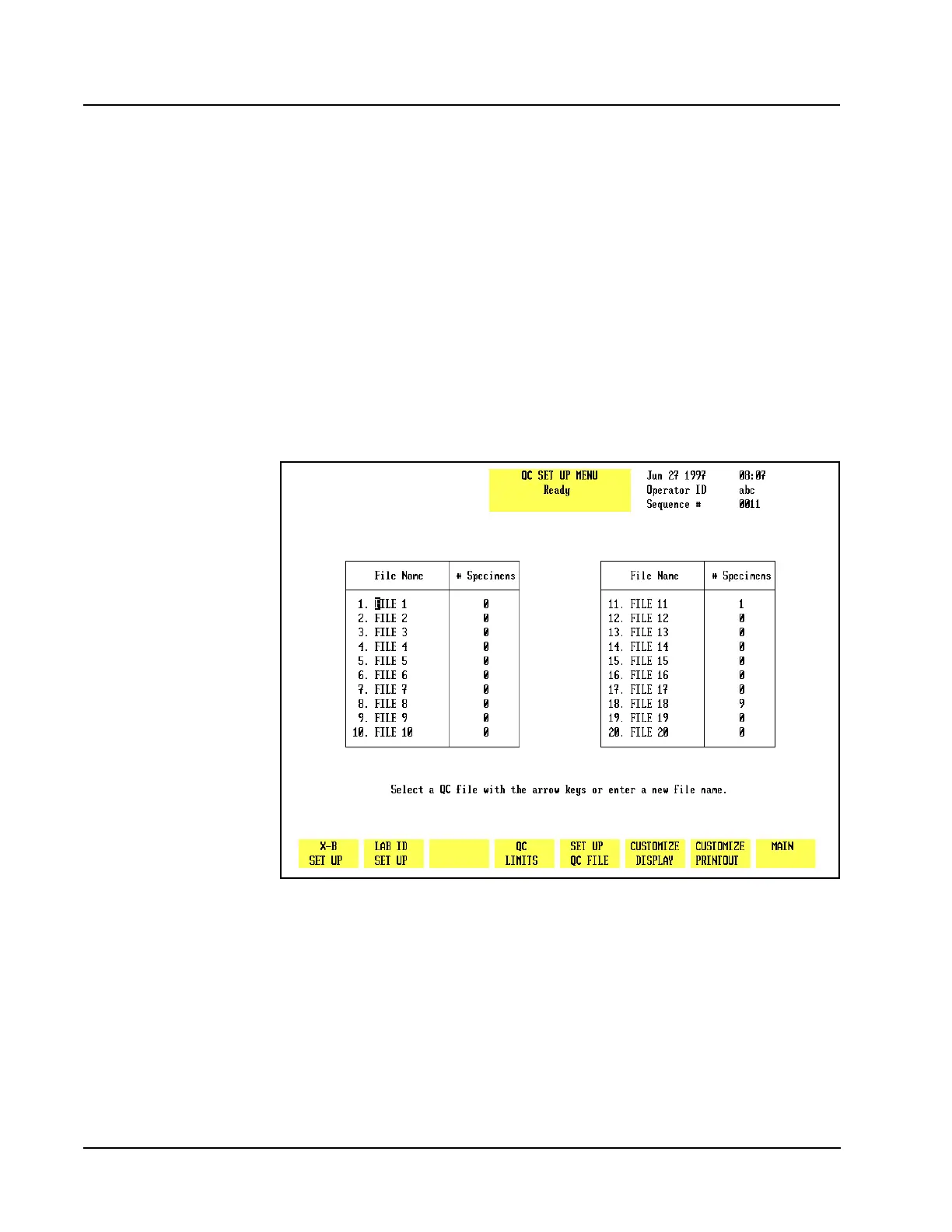 Figure 5.6 QC Set Up Menu Screen