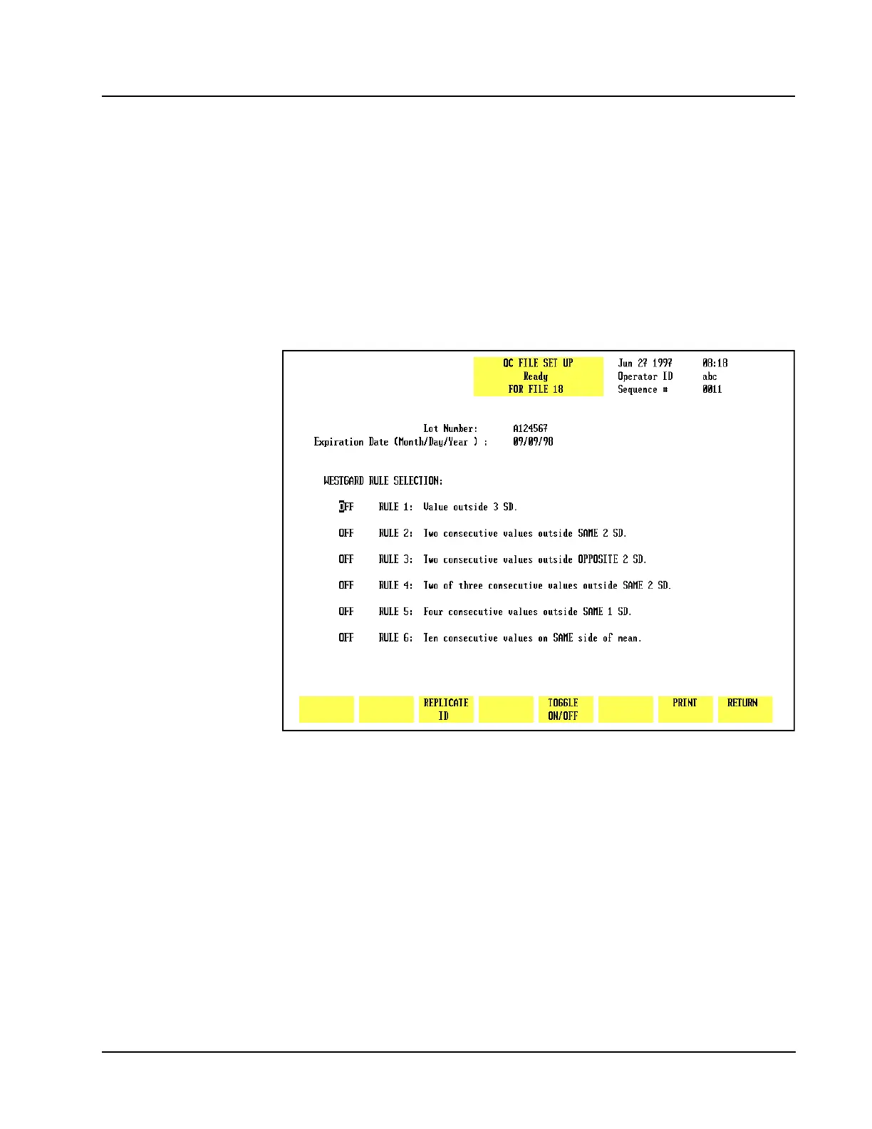 6. Press[SET UP QC FILE]to display the QC FILE SET UP screen.