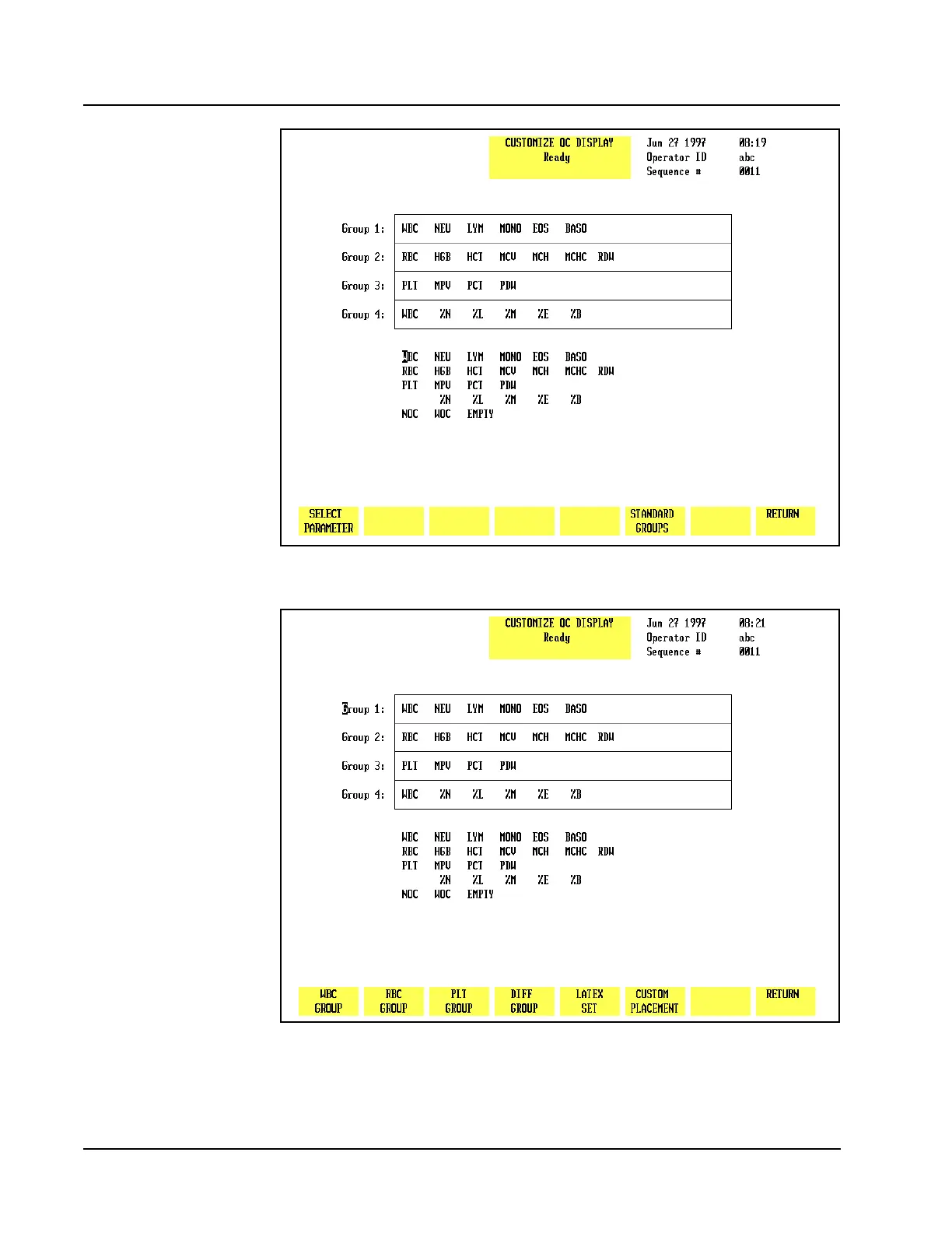 Figure 5.14 Customize QC Display Screen Showing Standard Groups