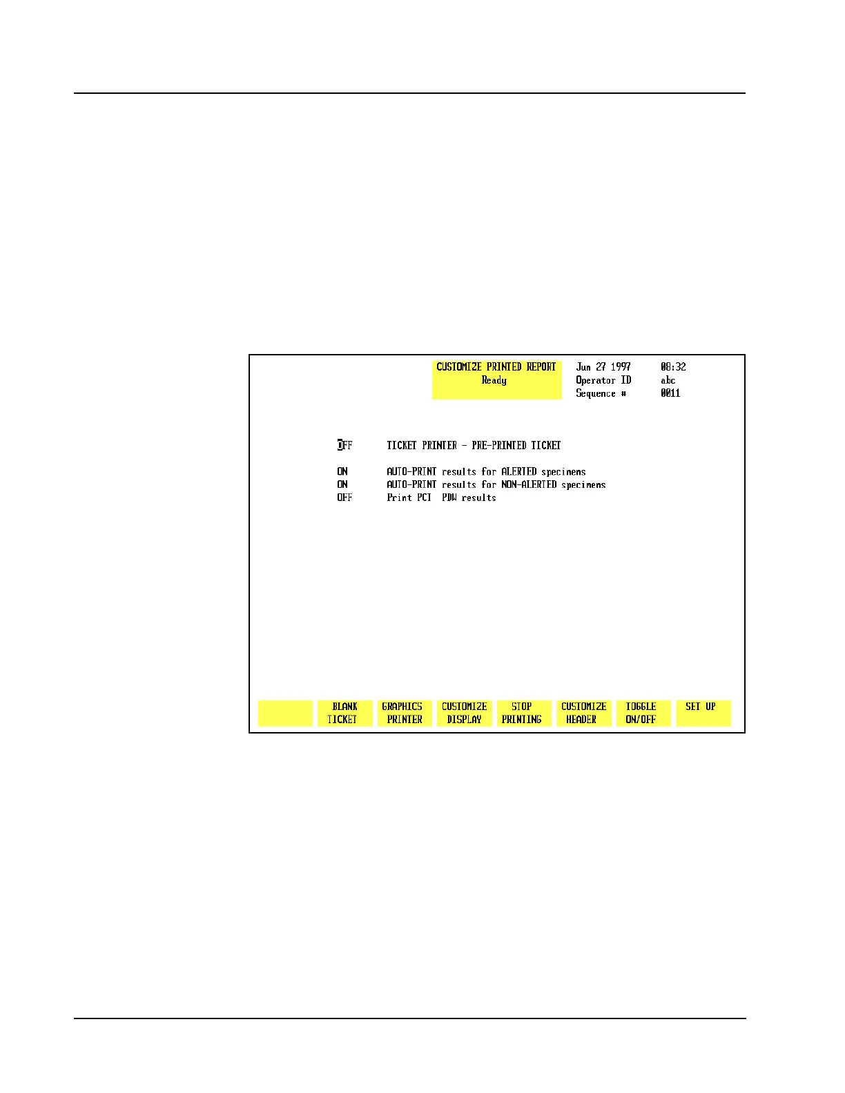 When the [PRE-PRNTD TICKET] key is pressed, the CUSTOMIZE PRINTED REPORT