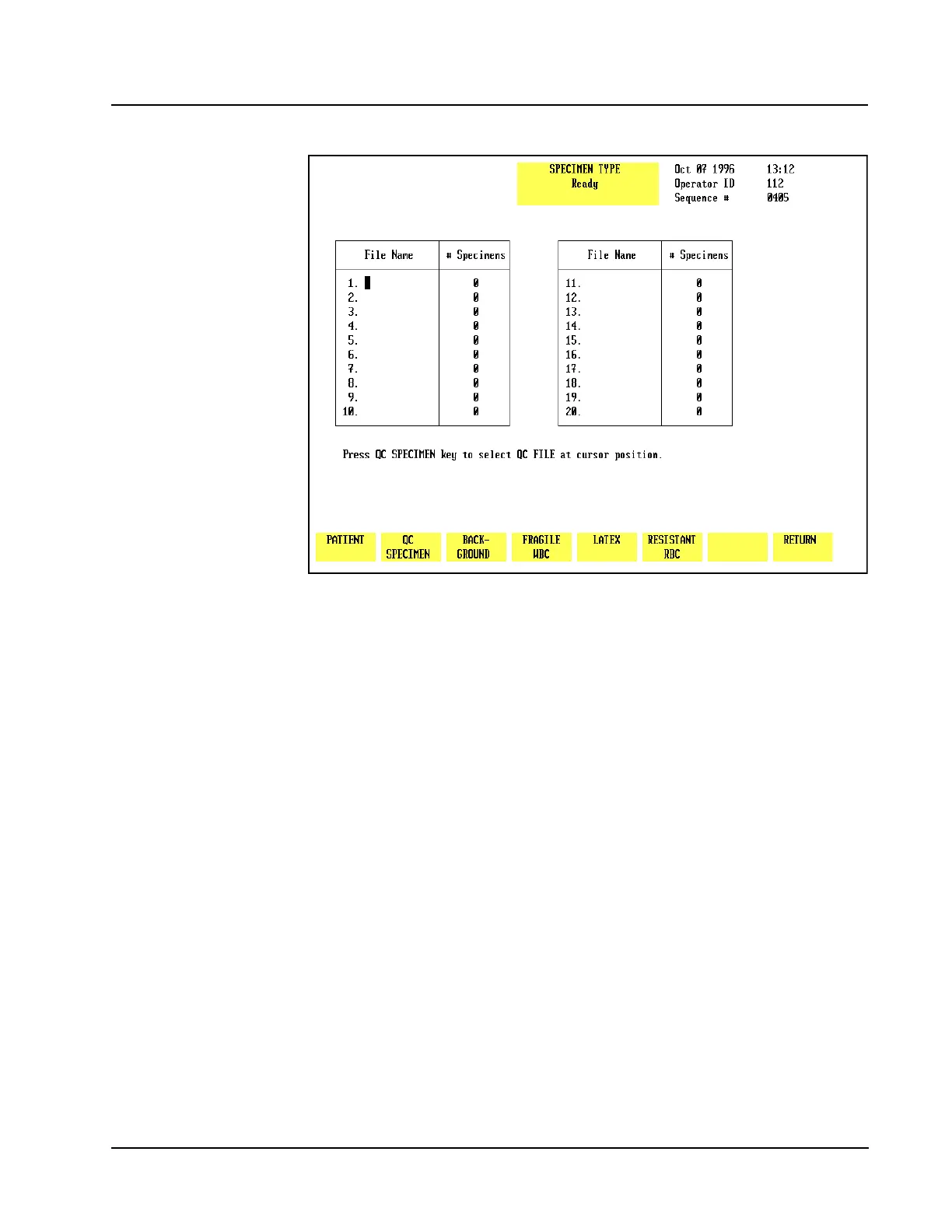 (See Figure 5.31.) When the[SPECIMEN TYPE] key is pressed, the screen displays