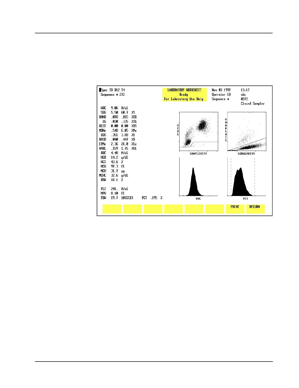 To display the LABORATORY WORKSHEET screen, press the Page Down key on the