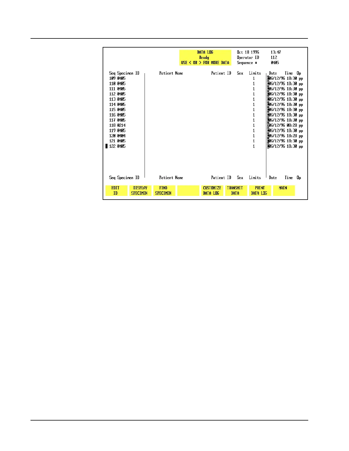 When the [DATA LOG] key is pressed in the MAIN MENU, the DATA LOGmenuand