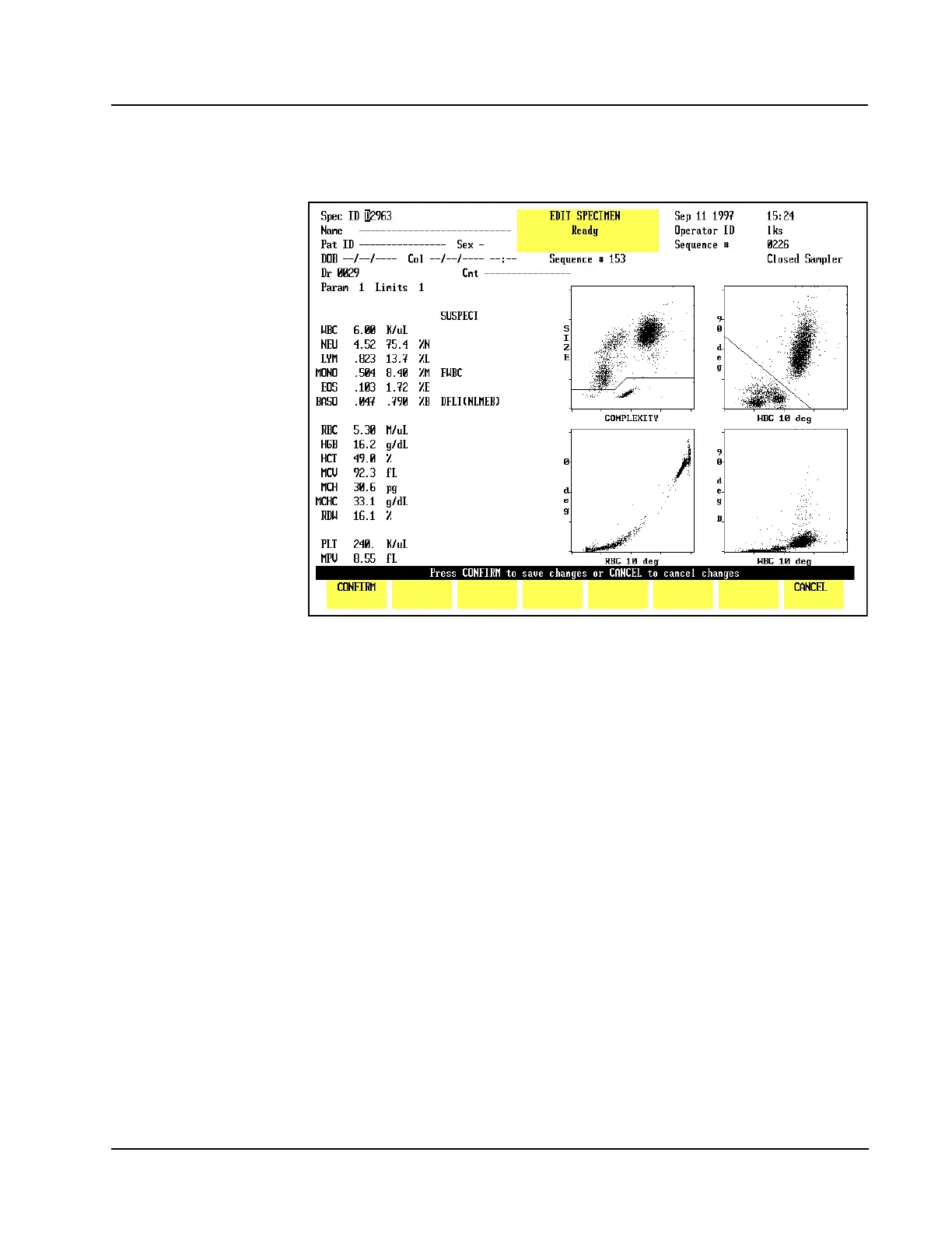 2. Locate the desired record and press [DISPLAY SPECIMEN] followed by [EDIT
