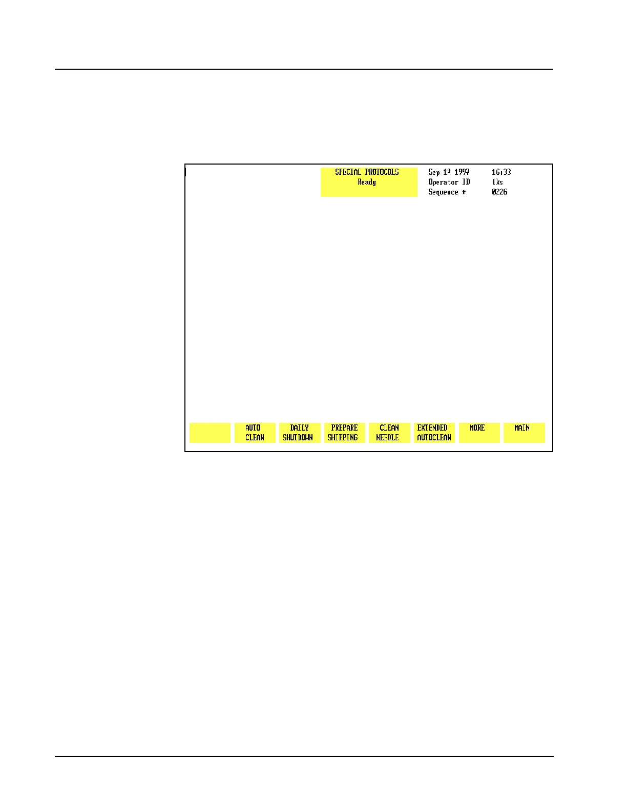 When the [MORE] key is pressed, the second SPECIAL PROTOCOLS screen and the