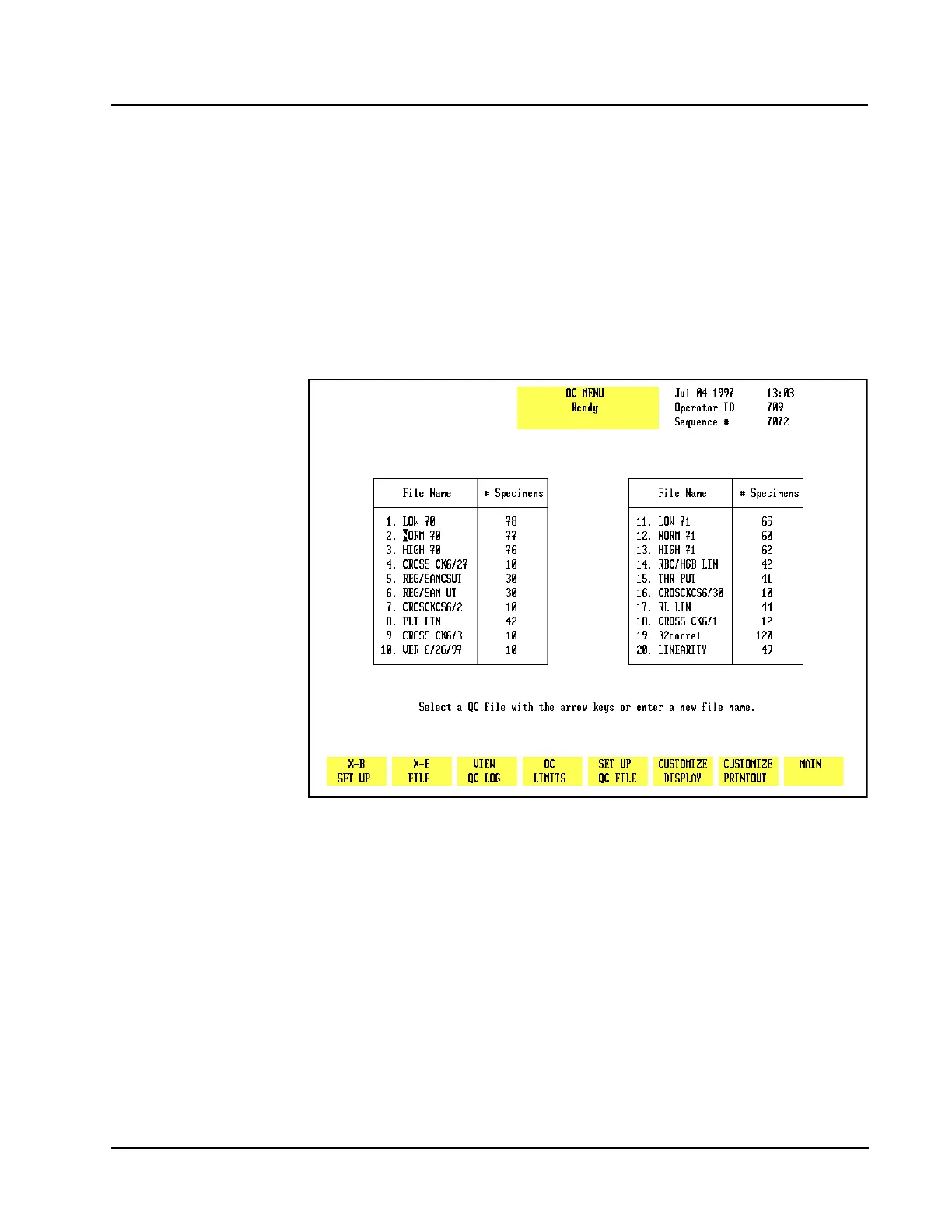 pressed. The options used to set up the QC Files are available from the QUALITY