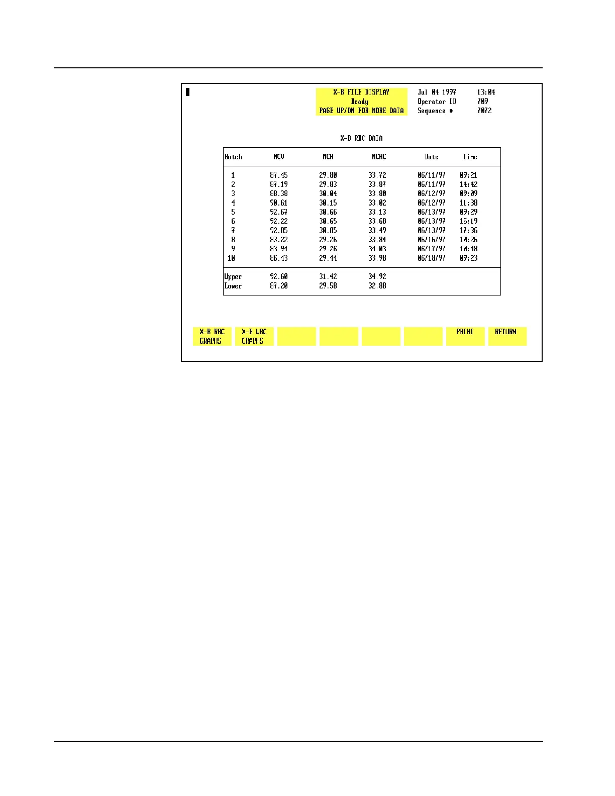 The [PRINT] key is used to print the X-B data or graphs. When this key is pressed,