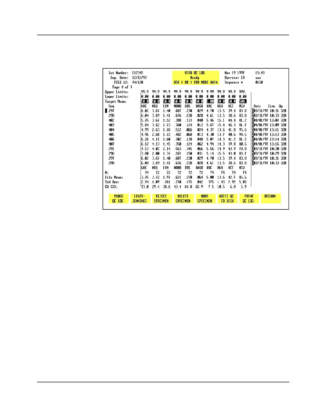 The [VIEW QC LOG] key is used to display the QC Log indicated by the position of