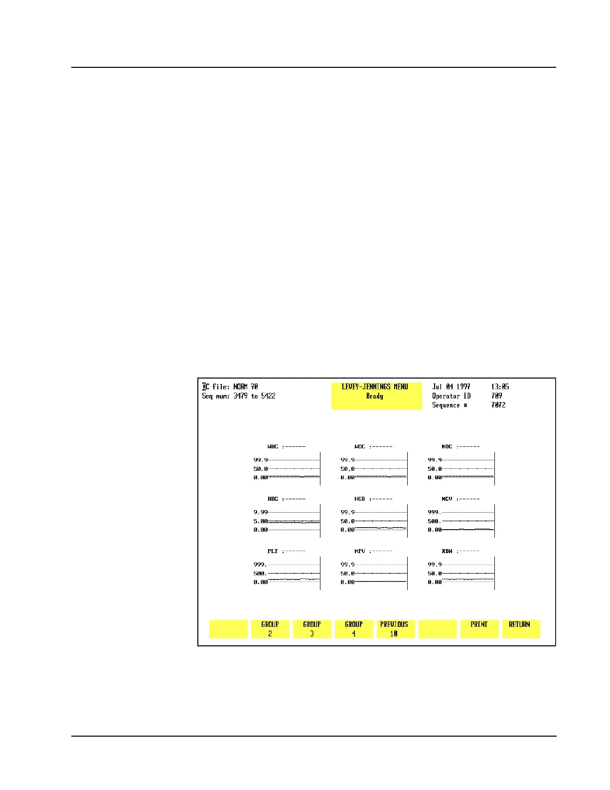 The [LEVEY-JENNINGS] key is used to display the Levey-Jennings graphs of the
