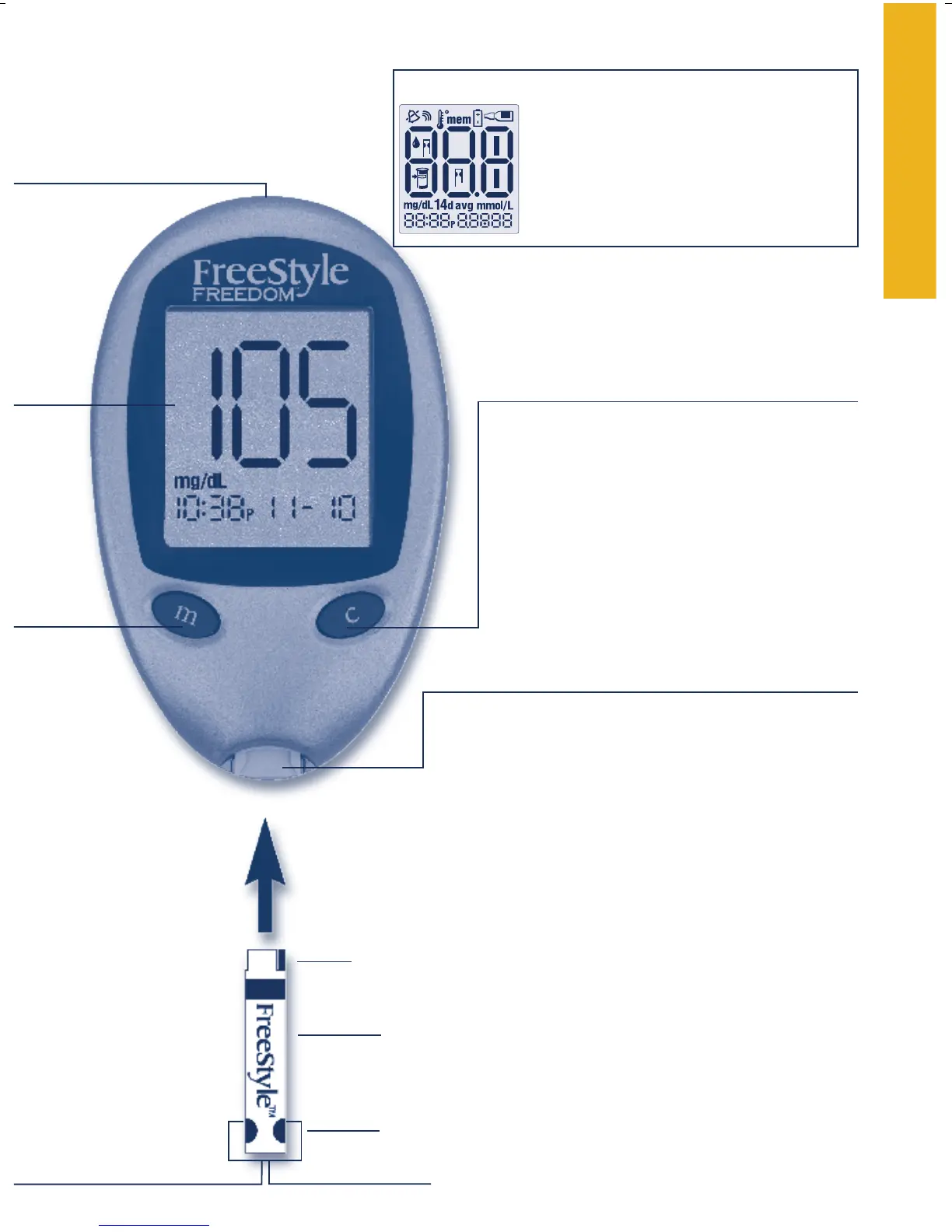 Test Strip here. The meter powers on
