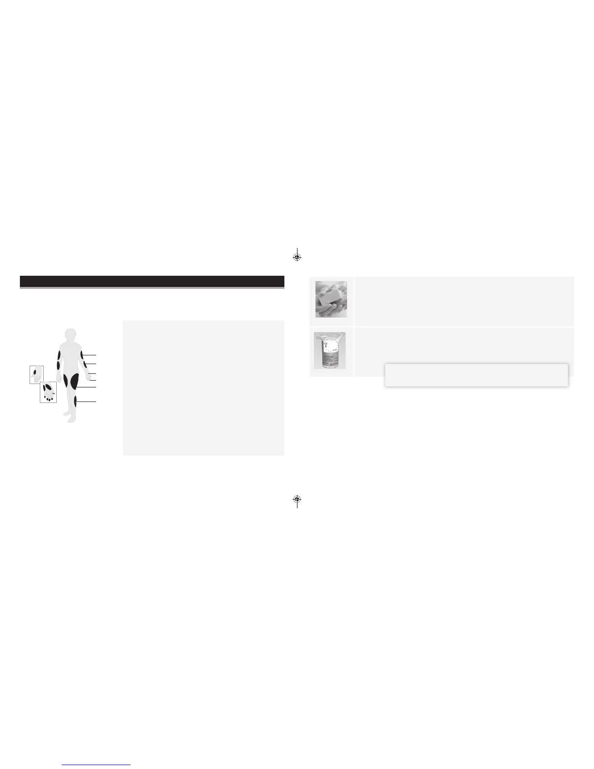 Note: Avoid moles, veins, bones and tendons. Bruising may