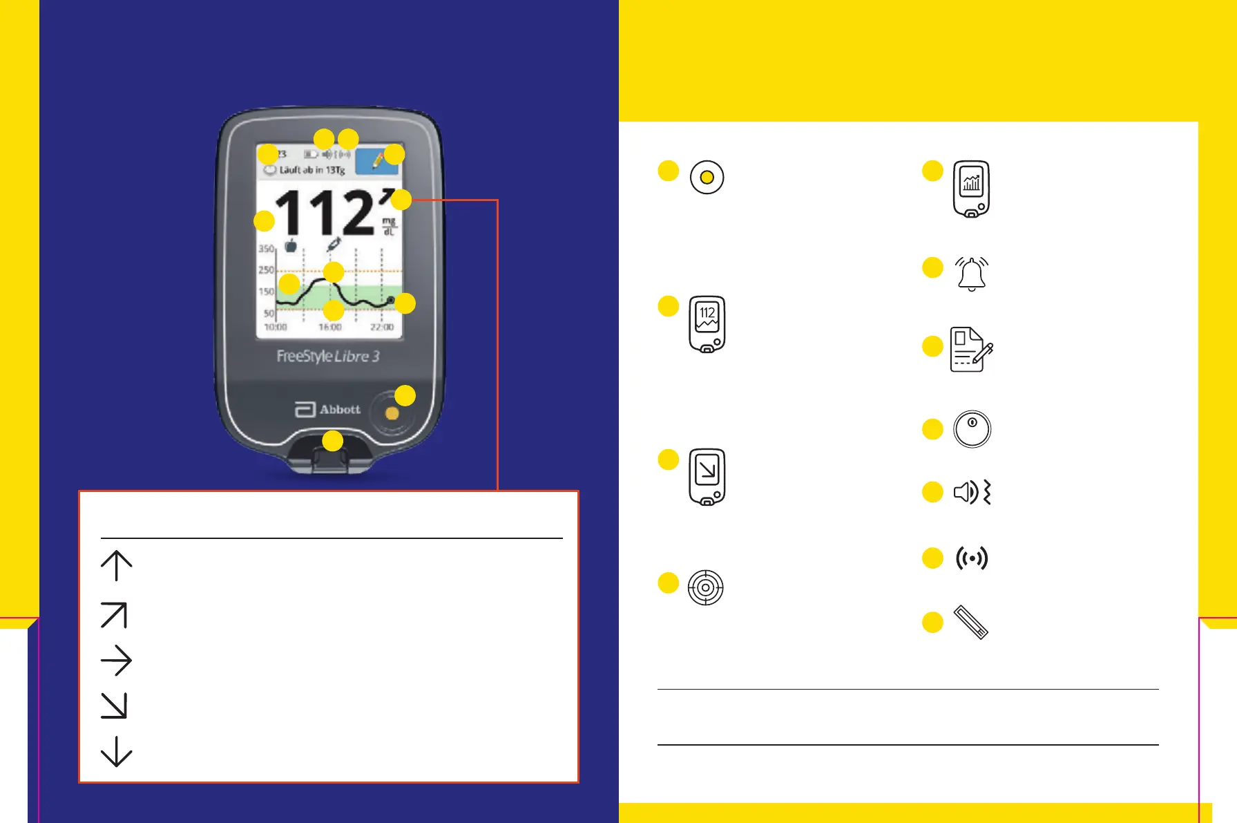The trend arrow shows at a glance which direction your glucose is heading.