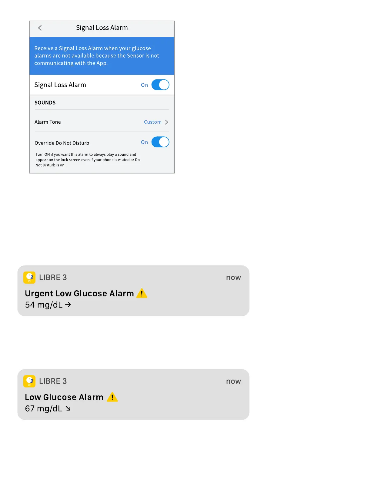 Urgent Low Glucose Alarm: Notifies you if your glucose drops below 55 mg/dL.