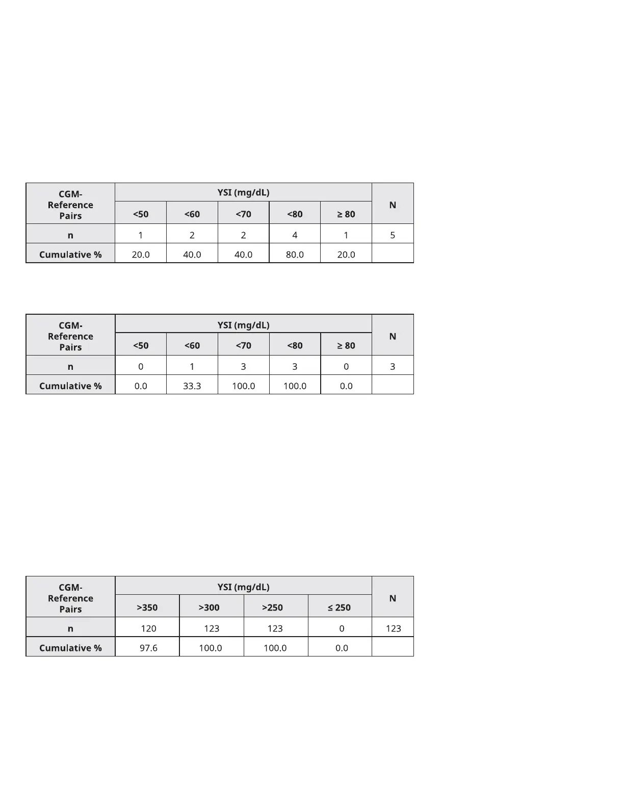 Tables 2c and 2d display the concurrence between the CGM and YSI reference