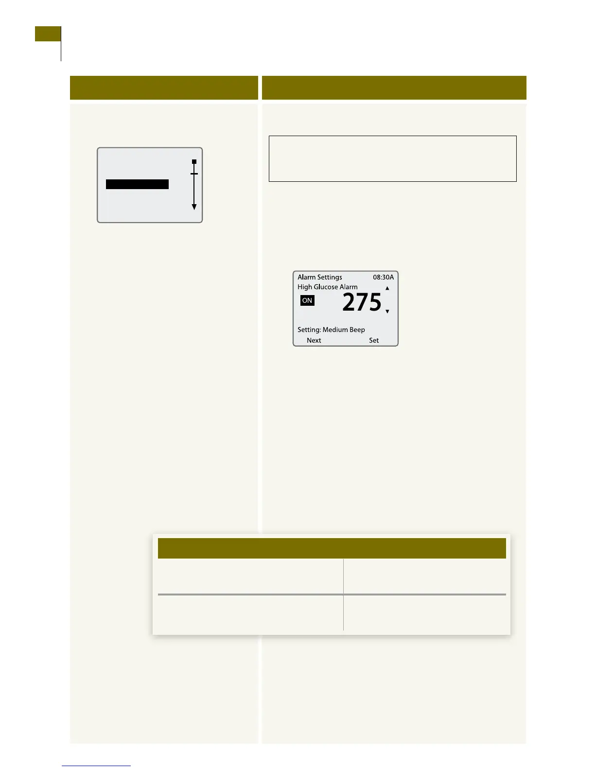 Caution: e High Glucose alarm cannot be set above