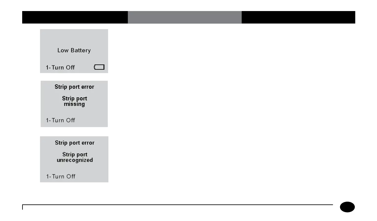 The strip port module has malfunctioned. Replace with a new strip port module.