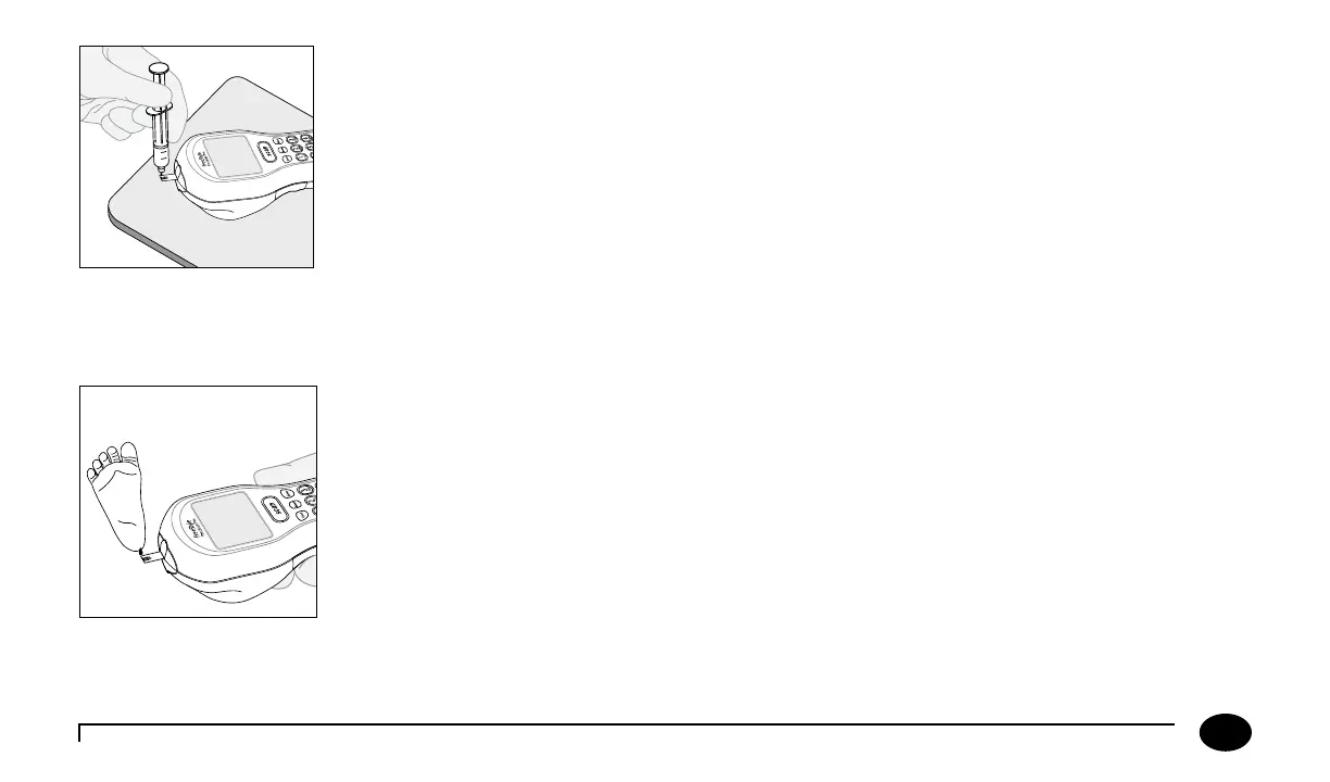 • Allow a drop of blood to form at the tip of the syringe.