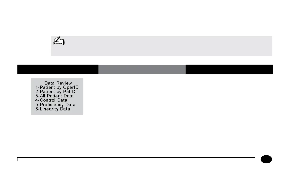 The meter stores the last 20 prociency test results. Please refer to the beginning of this Data Review chapter for step-by-step