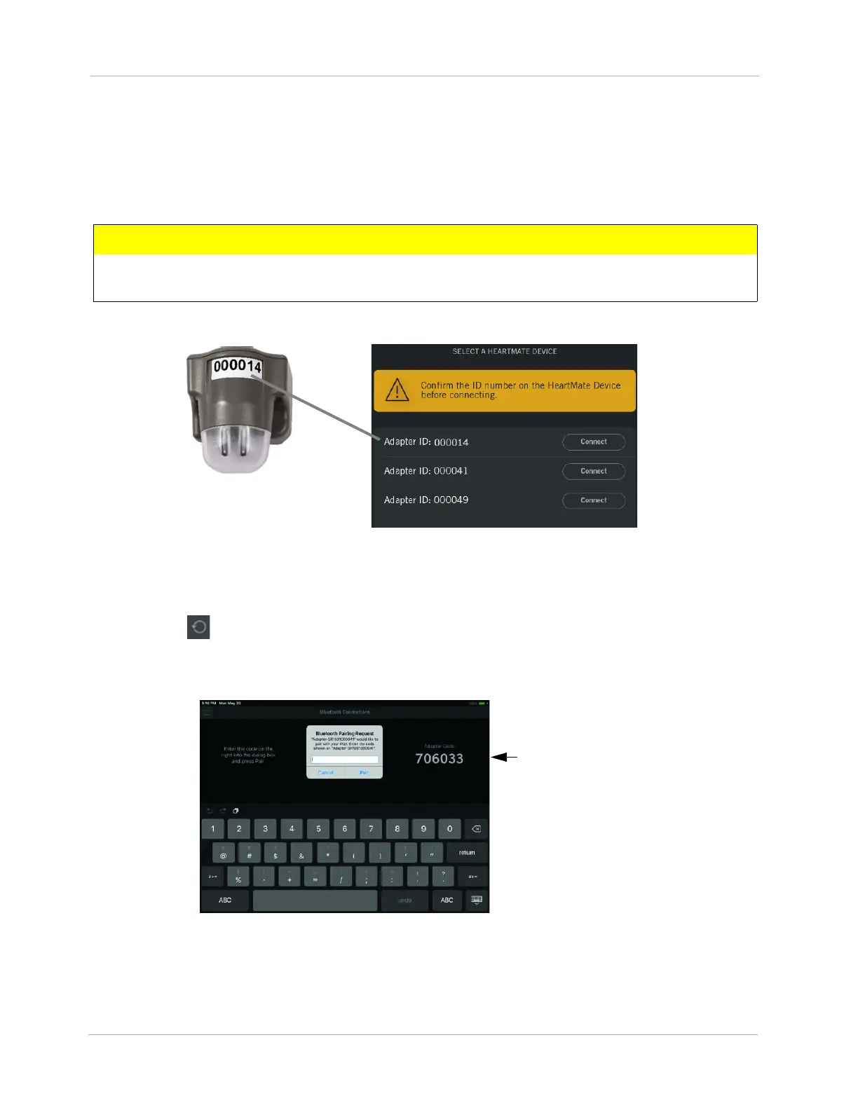 2. A Bluetooth® Connections window appears. Enter the HeartMate Touch Wireless Adapter code
