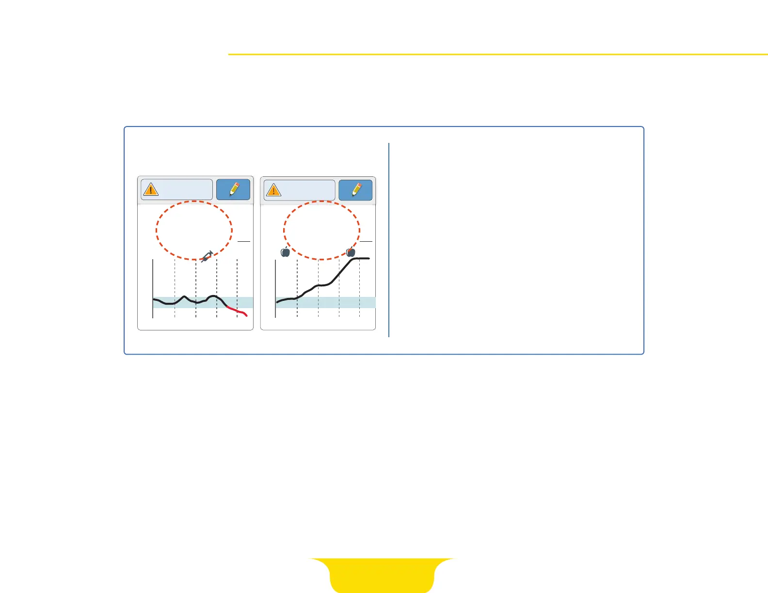 Current Glucose will display LO or HI when glucose readings are outside measuring range.