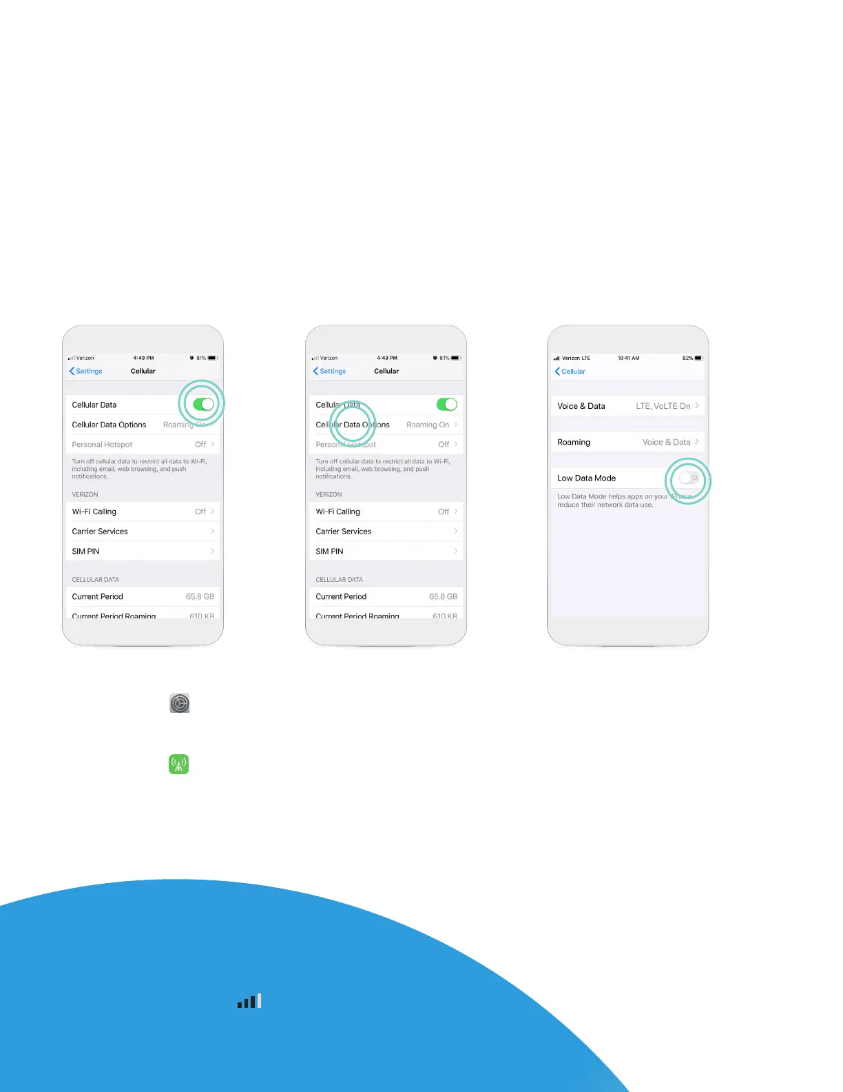 If you do not see any of these symbols, your cellular data may be turned OFF.