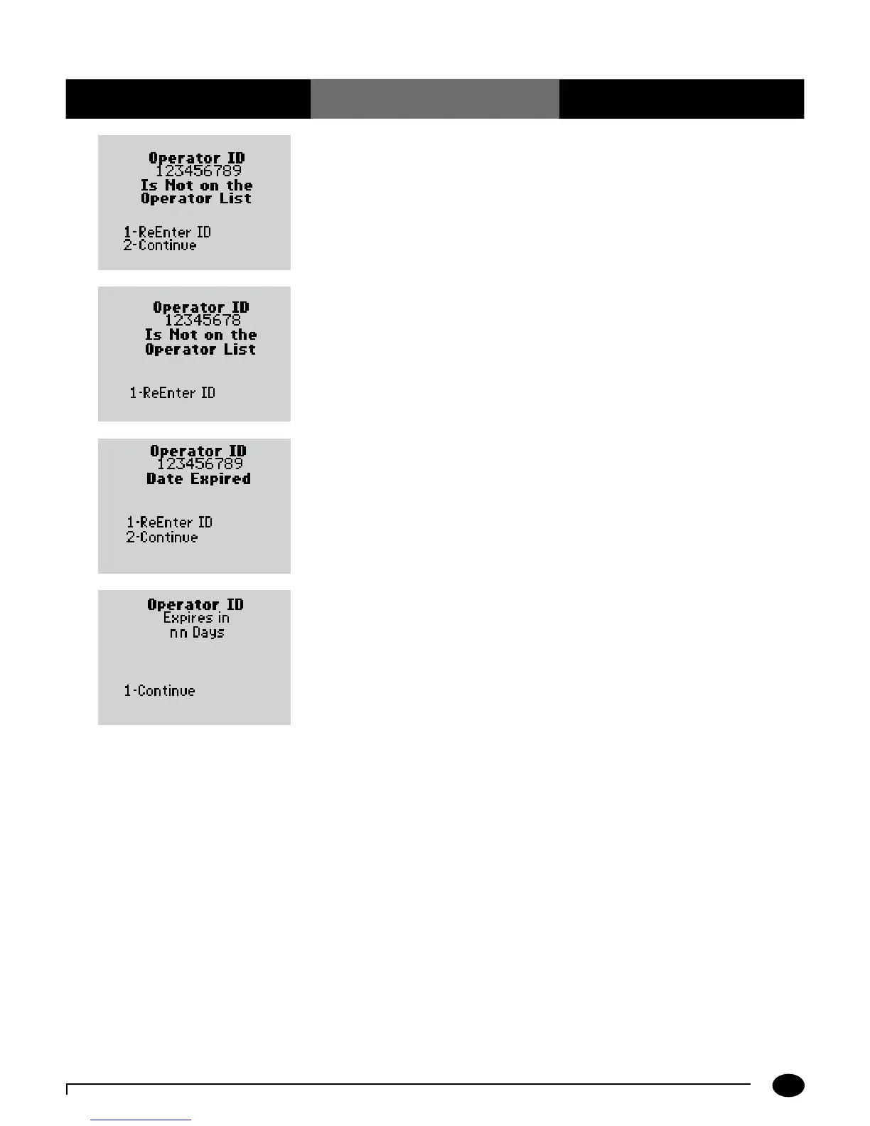The Operator ID entered is not on the list of