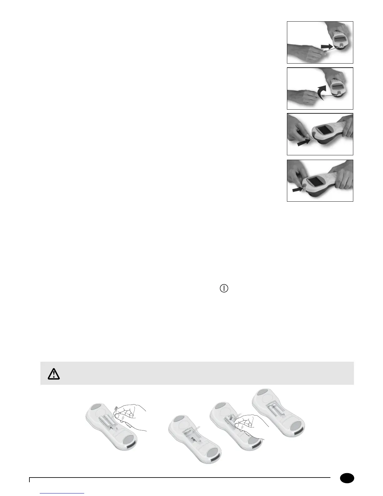 5. Insert the new batteries on top of the strap, using the + and - symbols in the battery compartment to position the new