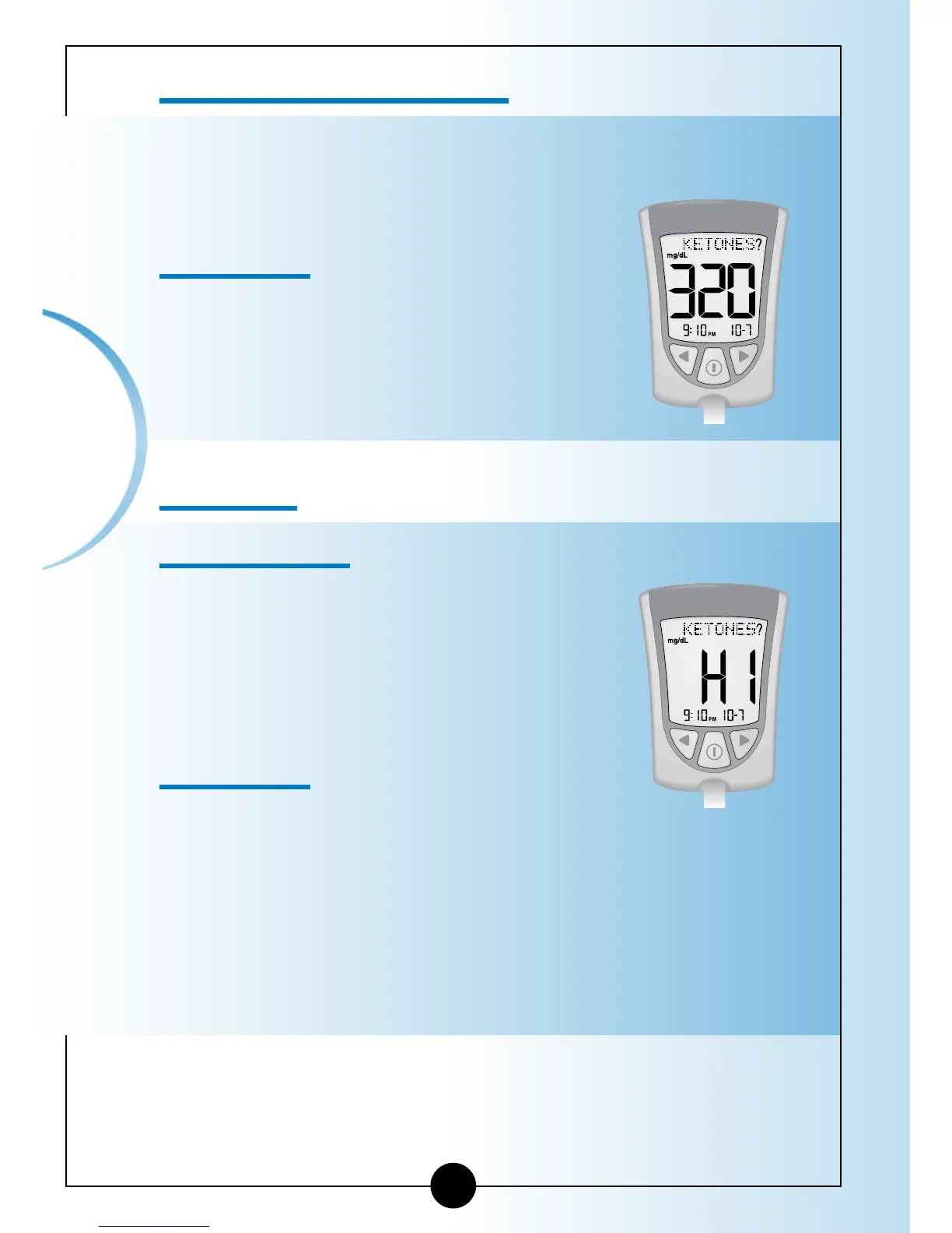 (16.7 mmol/L) or higher, KETONES? flashes on