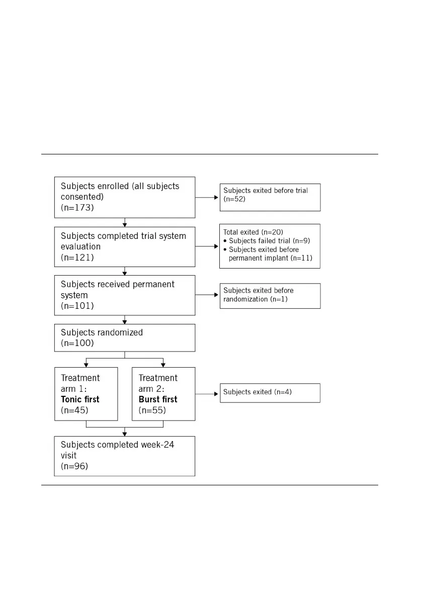 tonic stimulation. After the SCS trial evaluation, 101 subjects met the standard criteria for success
