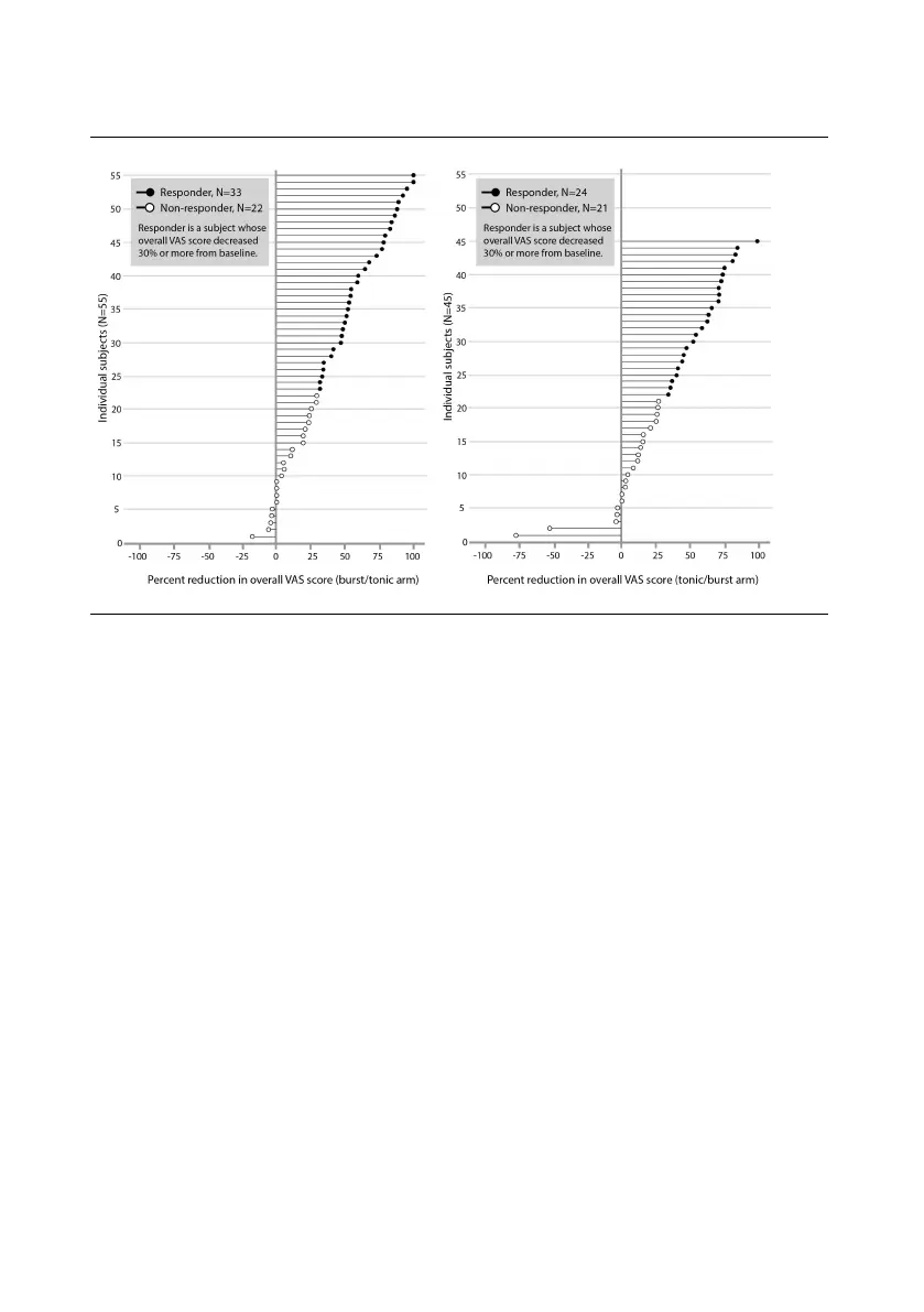 burst stimulation (right graph) in the individual subjects for week 24, using a responder rate