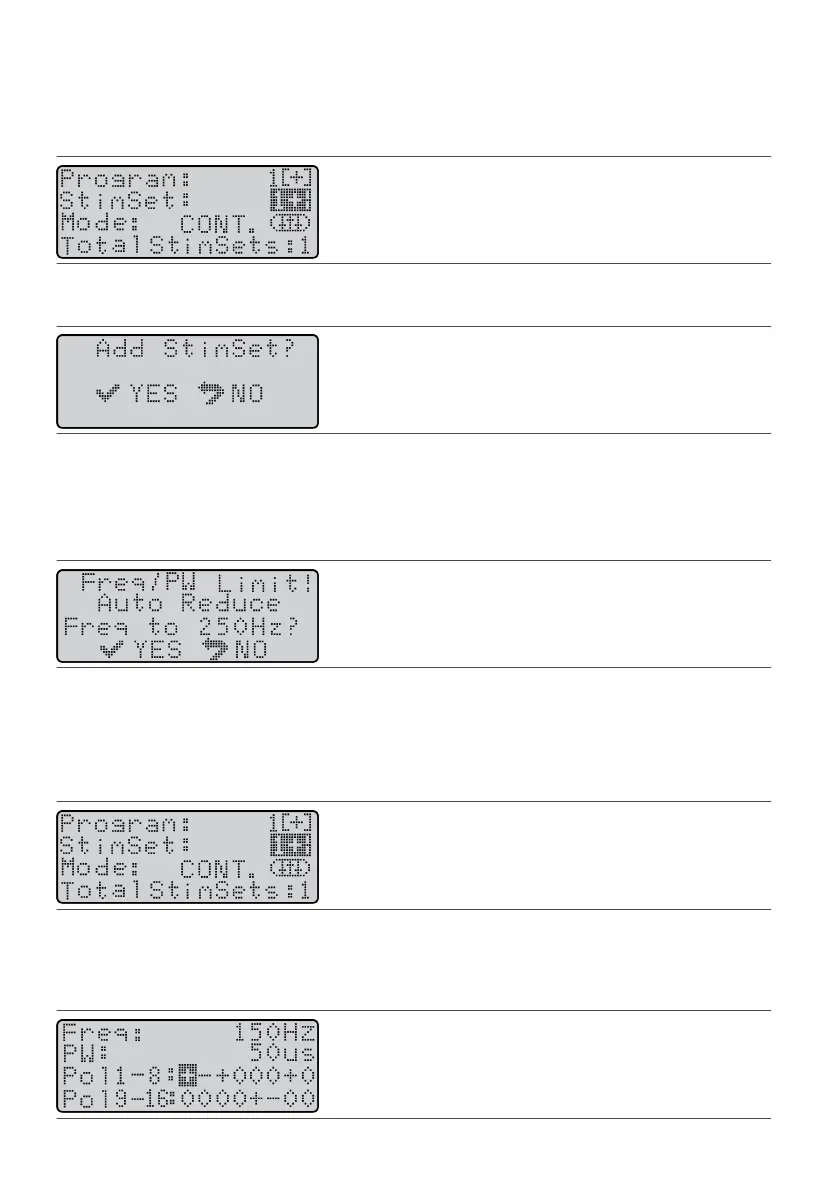 NOTE: If the Freq/PW Limit screen appears, the frequency sengs are too high. Press the Select key to