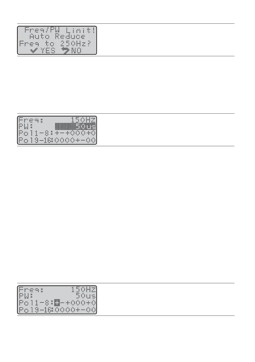 (µs). Pulse width adjustments can be made between 50 and 500 µs and in alternang increments of